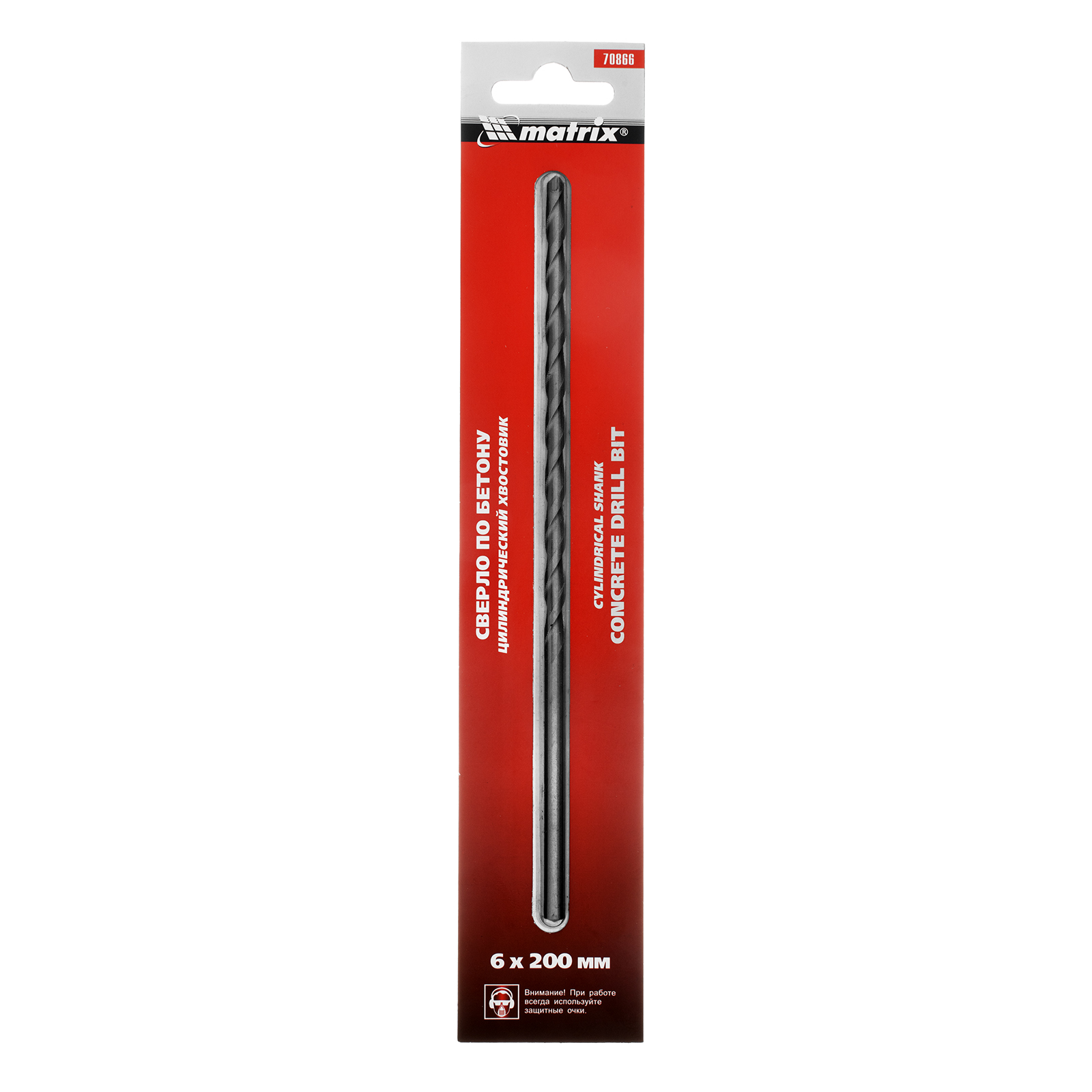 Сверло Matrix 70866 размером 6 х 200 мм, с цилиндрическим хвостовиком, устанавливается на дрель и используется для получения отверстий в бетоне, кирпиче, мраморе и других твердых материалах. Оно рассчитано на полупрофессиональное использование, подходит также для осуществления ремонтных и монтажных работ в быту. Благодаря удлиненному профилю оснастка подходит для глубокого сверления.