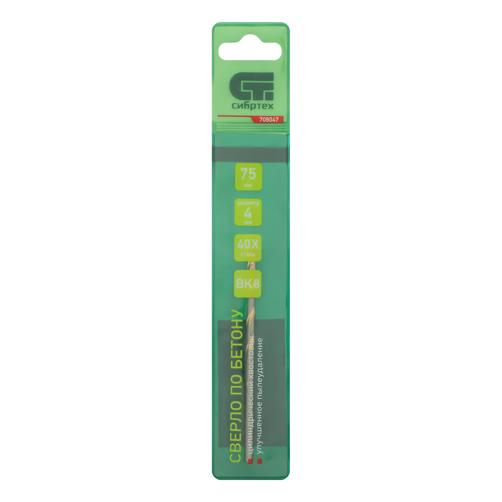 Сверло по бетону Сибртех 708047 диаметром 4 мм и длиной 75 мм, с цилиндрическим хвостовиком и улучшенным пылеудалением, предназначено для сверления в ударном режиме бетона и кирпича. Пригодится во время строительных и ремонтных работ.