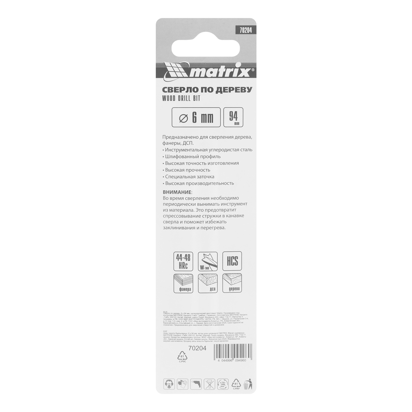 Сверло по дереву Matrix 70204 размером 6 х 94 мм, с цилиндрическим хвостовиком, предназначено для получения отверстий в древесине. Особая конструкция обеспечивает эффективный отвод стружки и получение точного и ровного отверстия. Оснастка пригодится при проведении строительных, ремонтных и отделочных работ.
