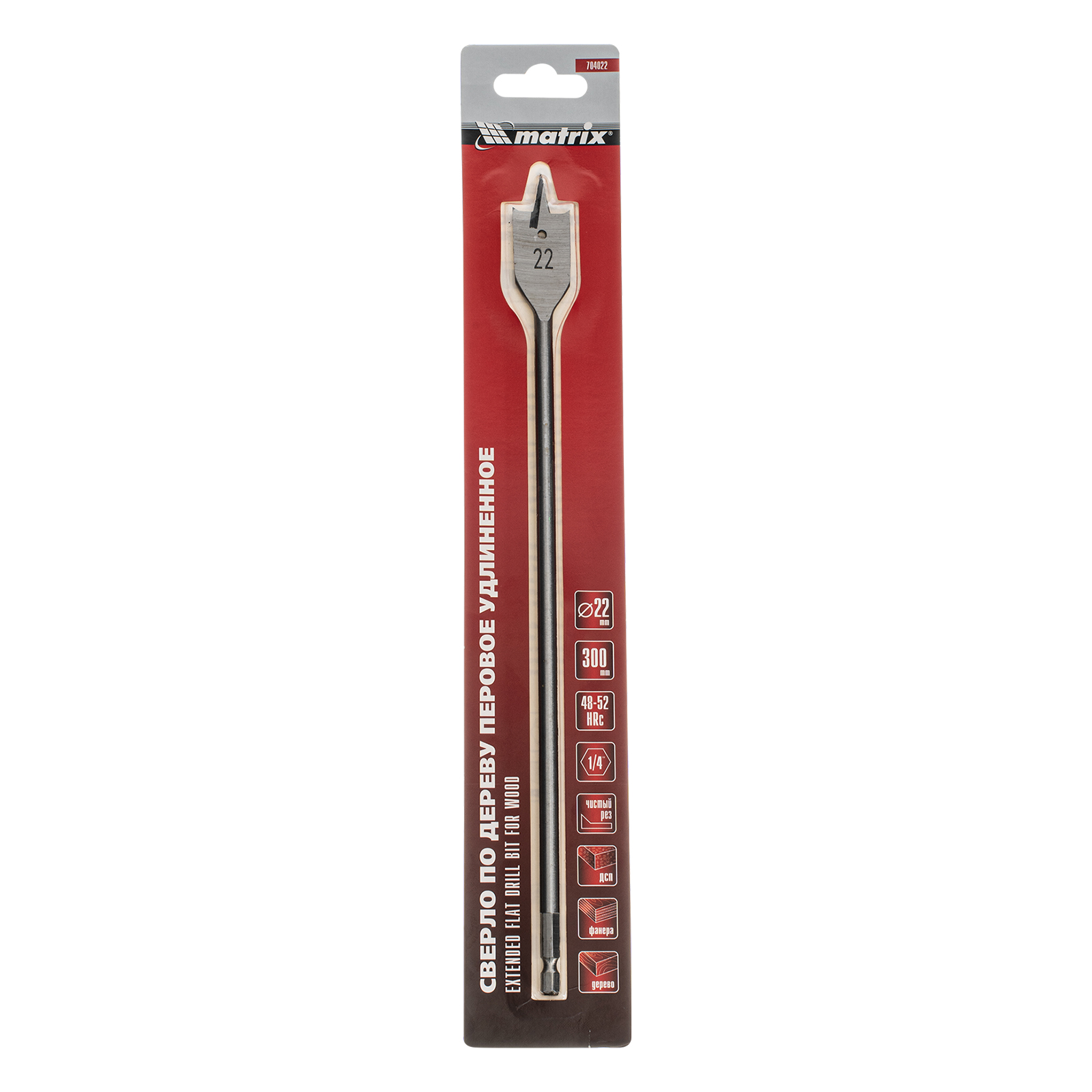 Удлиненное перовое сверло по дереву Matrix 704022 диаметром 22 мм, с 6-гранным хвостовиком, за счет длины 300 мм позволяет получать глубокие отверстия без необходимости использования удлинителя. Эффективно сверлит древесину любой твердости.