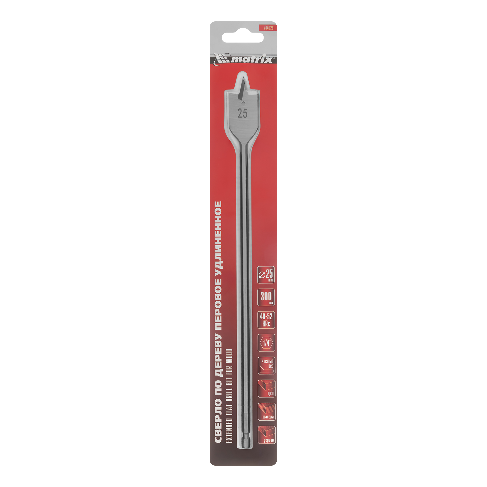 Удлиненное перовое сверло по дереву Matrix 704025 диаметром 25 мм, с 6-гранным хвостовиком, за счет длины 300 мм позволяет получать глубокие отверстия без необходимости использования удлинителя. Эффективно сверлит древесину любой твердости.