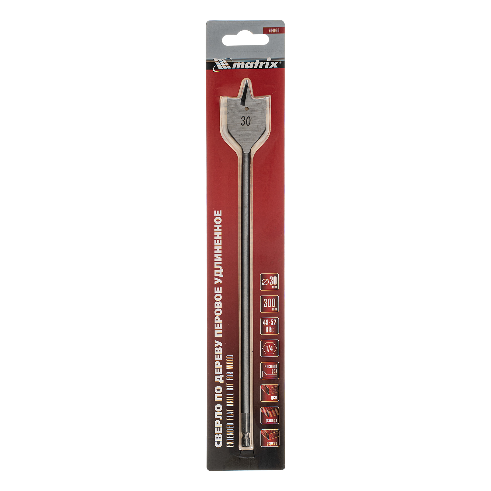 Удлиненное перовое сверло по дереву Matrix 704030 диаметром 30 мм, с 6-гранным хвостовиком, за счет длины 300 мм позволяет получать глубокие отверстия без необходимости использования удлинителя. Эффективно сверлит древесину любой твердости.