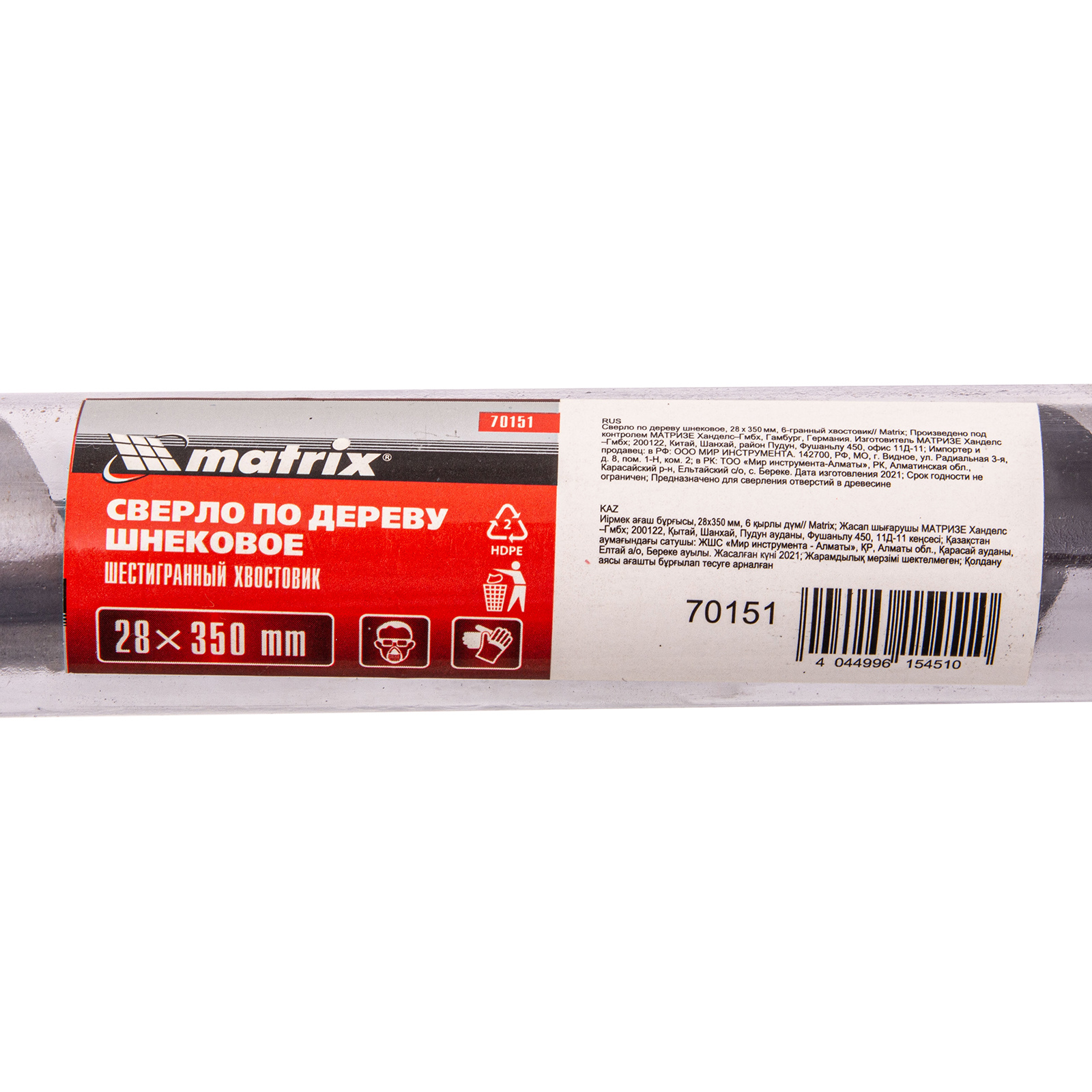 Шнековое сверло по дереву Matrix 70151 размером 28 х 350 мм, с 6-гранным хвостовиком, предназначено для получения глубоких отверстий. Подходит для работы как с мягкими, так и с твердыми породами древесины. Конструкция сверла рассчитана на интенсивное использование с высокими нагрузками в ходе строительных, ремонтных и отделочных работ.
