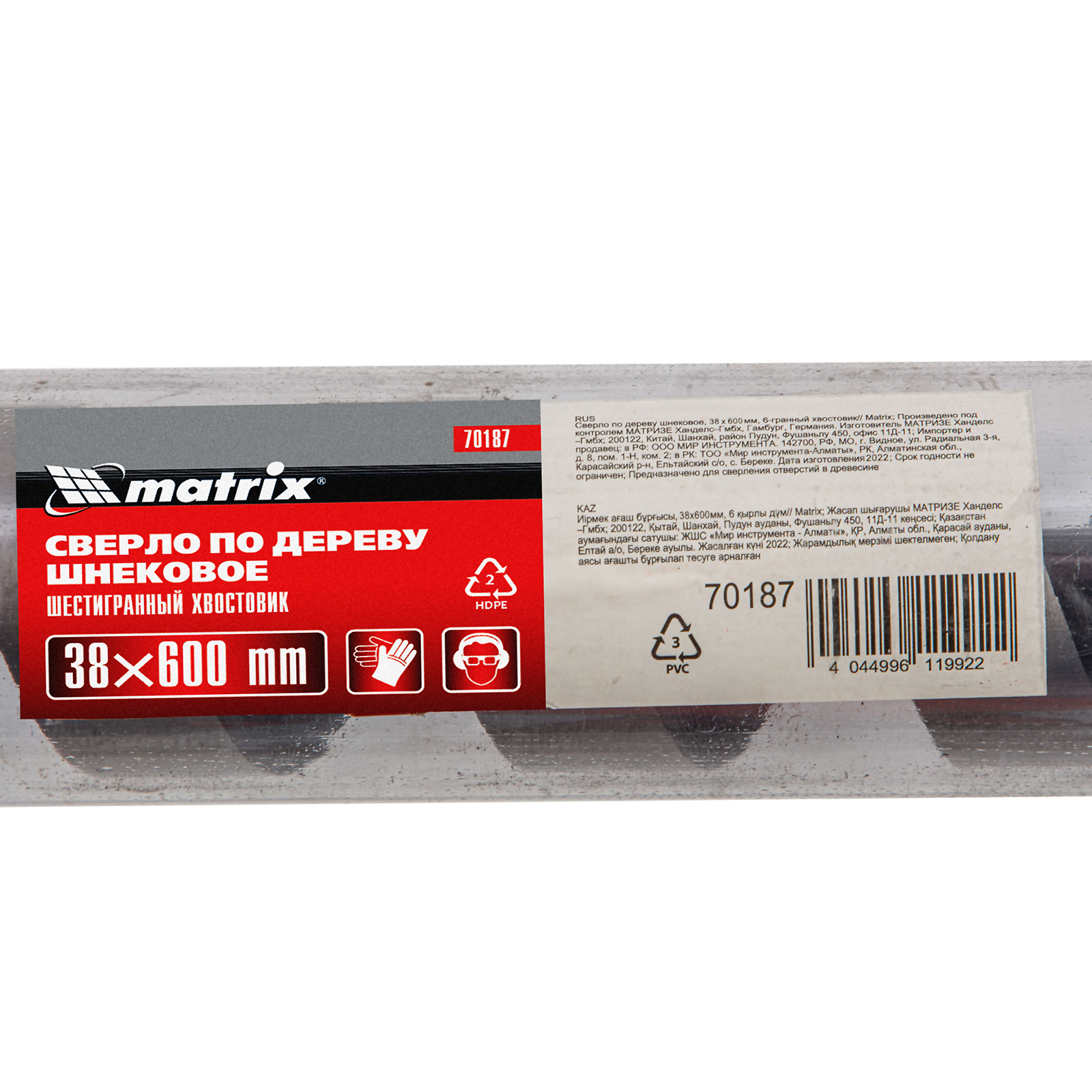 Шнековое сверло по дереву Matrix 70187 размером 38 х 600 мм, с 6-гранным хвостовиком, предназначено для получения глубоких отверстий. Подходит для работы как с мягкими, так и с твердыми породами древесины. Конструкция сверла рассчитана на интенсивное использование с высокими нагрузками в ходе строительных, ремонтных и отделочных работ.
