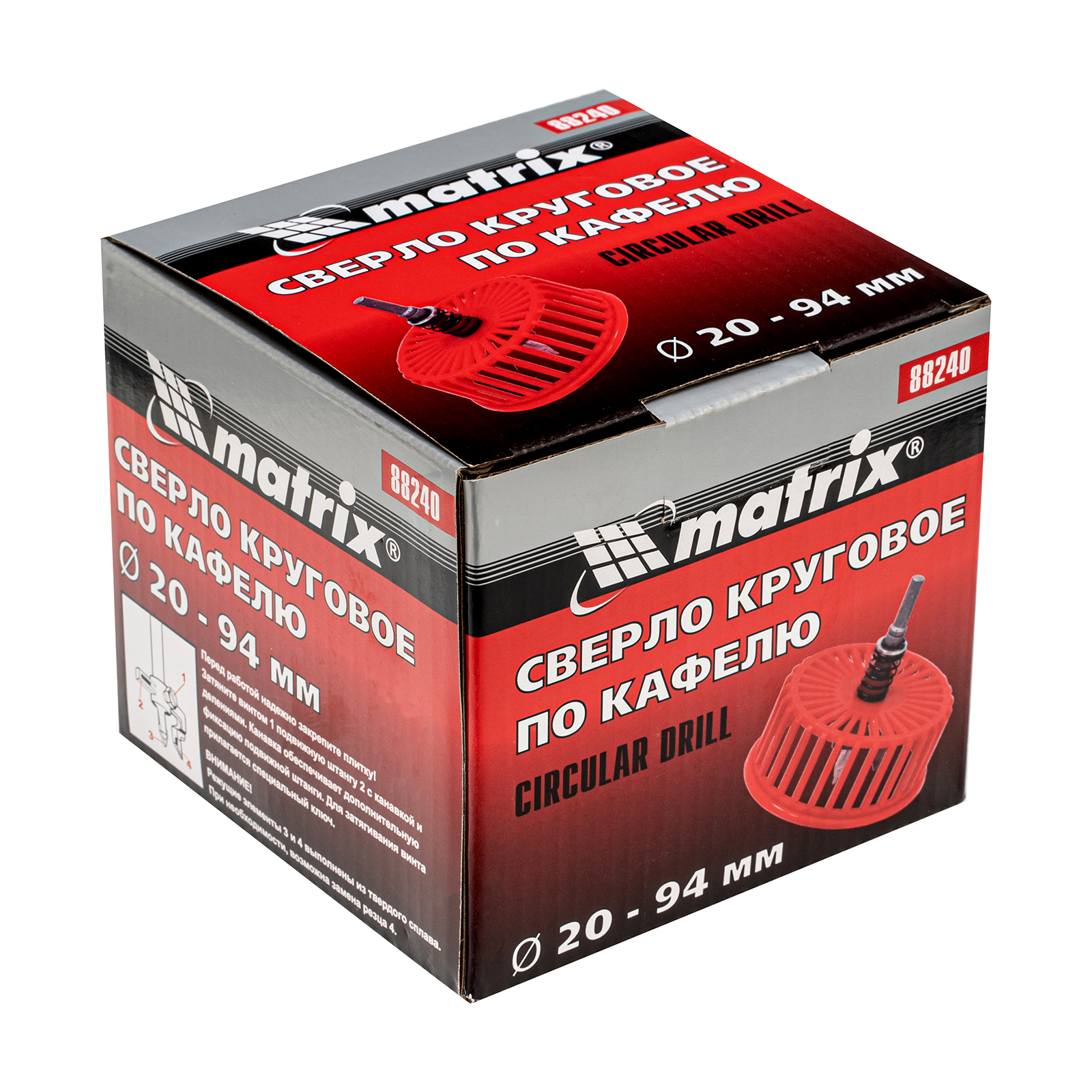Круговое сверло по кафелю Matrix «Балеринка» 88240 оснащено защитной решеткой, которая удерживает крупную стружку, предохраняя мастера от травм. Сверло применяется для получения отверстий большого диаметра в кафеле, плитке, твердой пластмассе.