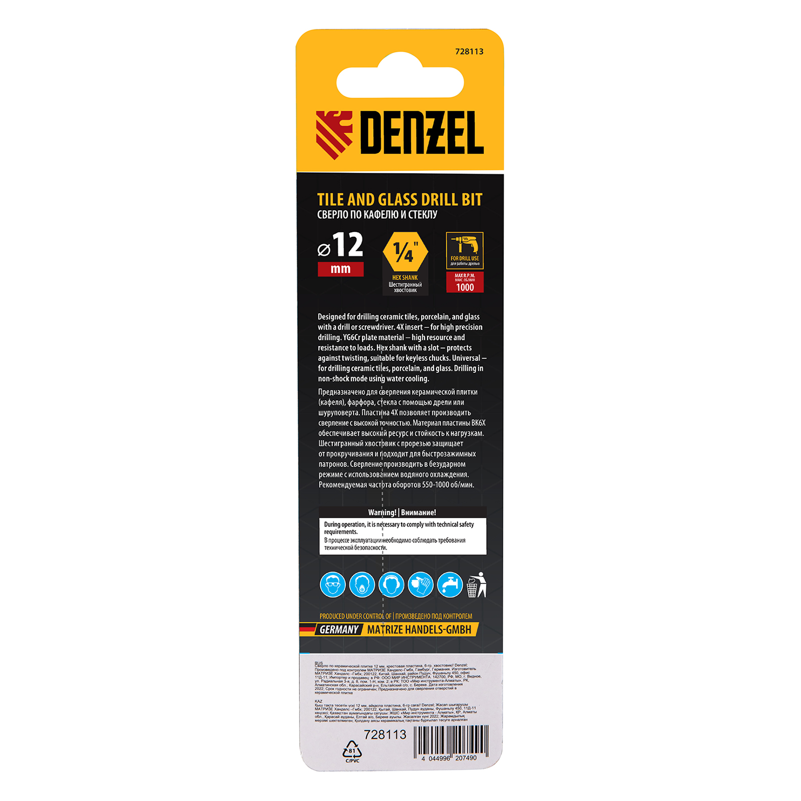 Сверло Denzel 728113 диаметром 12 мм, с крестовой пластиной и шестигранным хвостовиком, используется для сверления керамической плитки, стекла и других материалов с помощью дрели или шуруповерта. Четырехкромочная режущая пластина обеспечивает высокую скорость засверливания. Оснастка выдерживает высокие нагрузки и подходит для интенсивного профессионального использования.