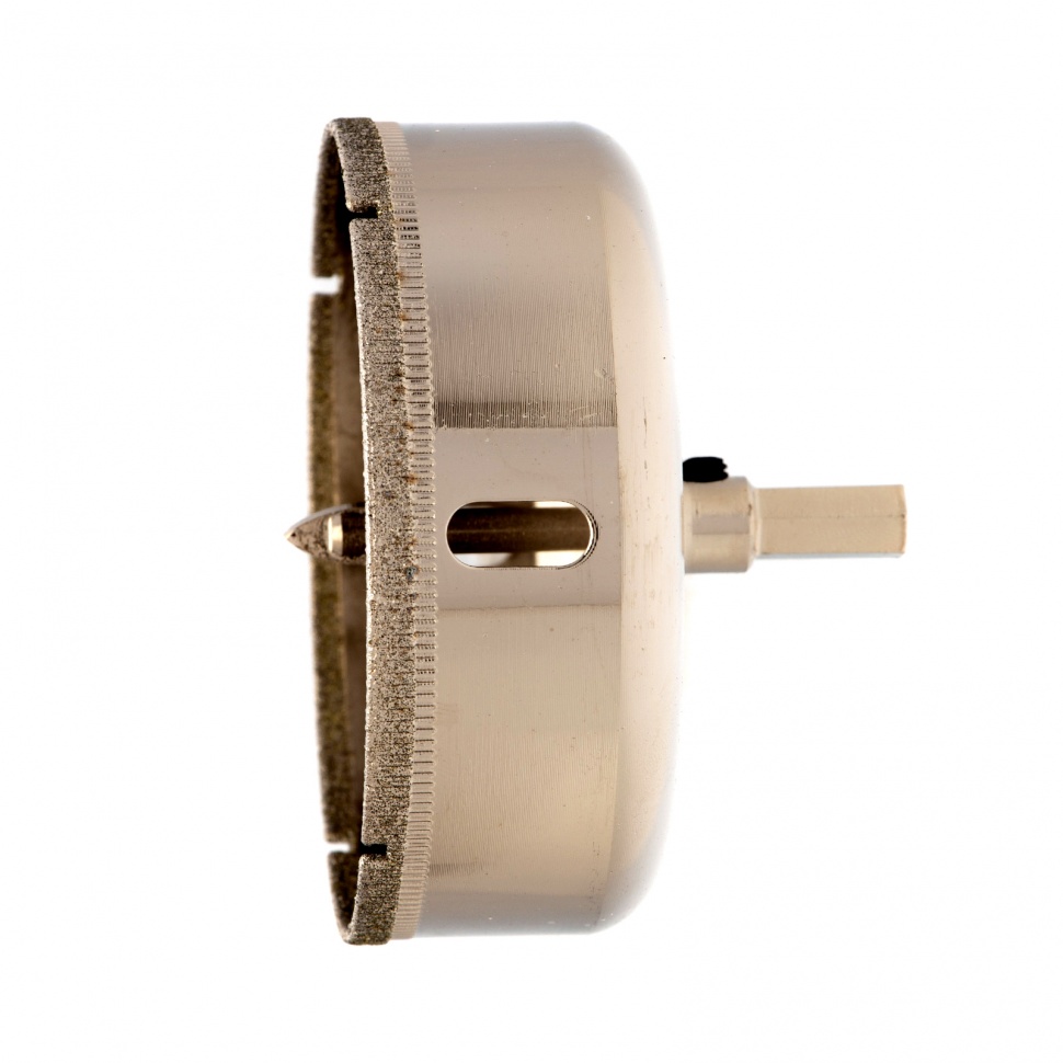 - Точное позиционирование — центрирующее сверло быстро заглубляется в материал, не давая коронке сдвигаться во время сверления.
