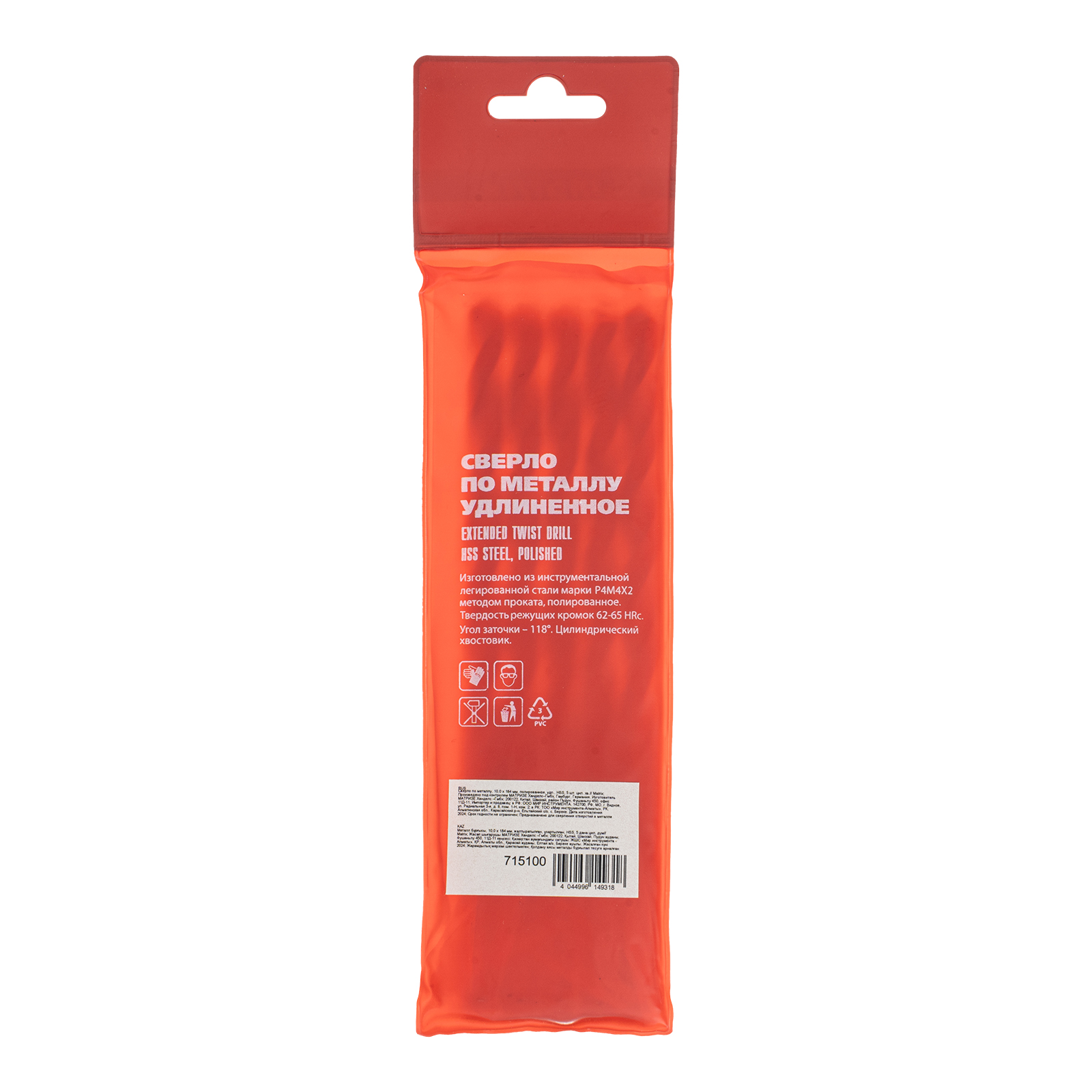 Полированное удлиненное сверло по металлу Matrix 715100 размером 10,0 х 184 мм, из стали HSS, с цилиндрическим хвостовиком, 5 шт. в упаковке, благодаря удлиненному профилю подходит для глубокого сверления. Угол заточки сверл составляет 118° и является оптимальным для работы с черными металлами, сталью, чугуном и твердой бронзой.