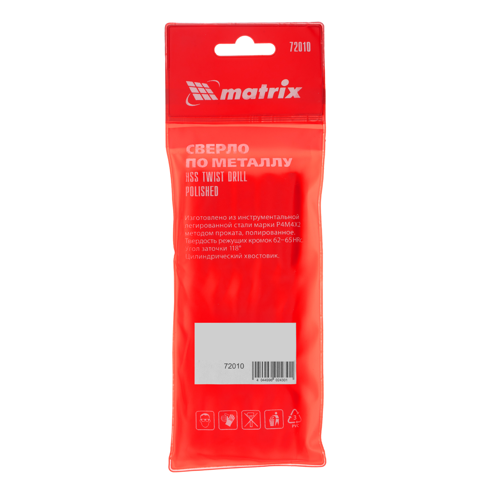 Полированное сверло по металлу Matrix 72010 из стали HSS, с цилиндрическим хвостовиком, 5 шт. в упаковке, используется для получения отверстий диаметром 11 мм. Угол заточки составляет 118 градусов, поэтому сверло оптимально для работы с черными металлами, сталью, чугуном и твердой бронзой.