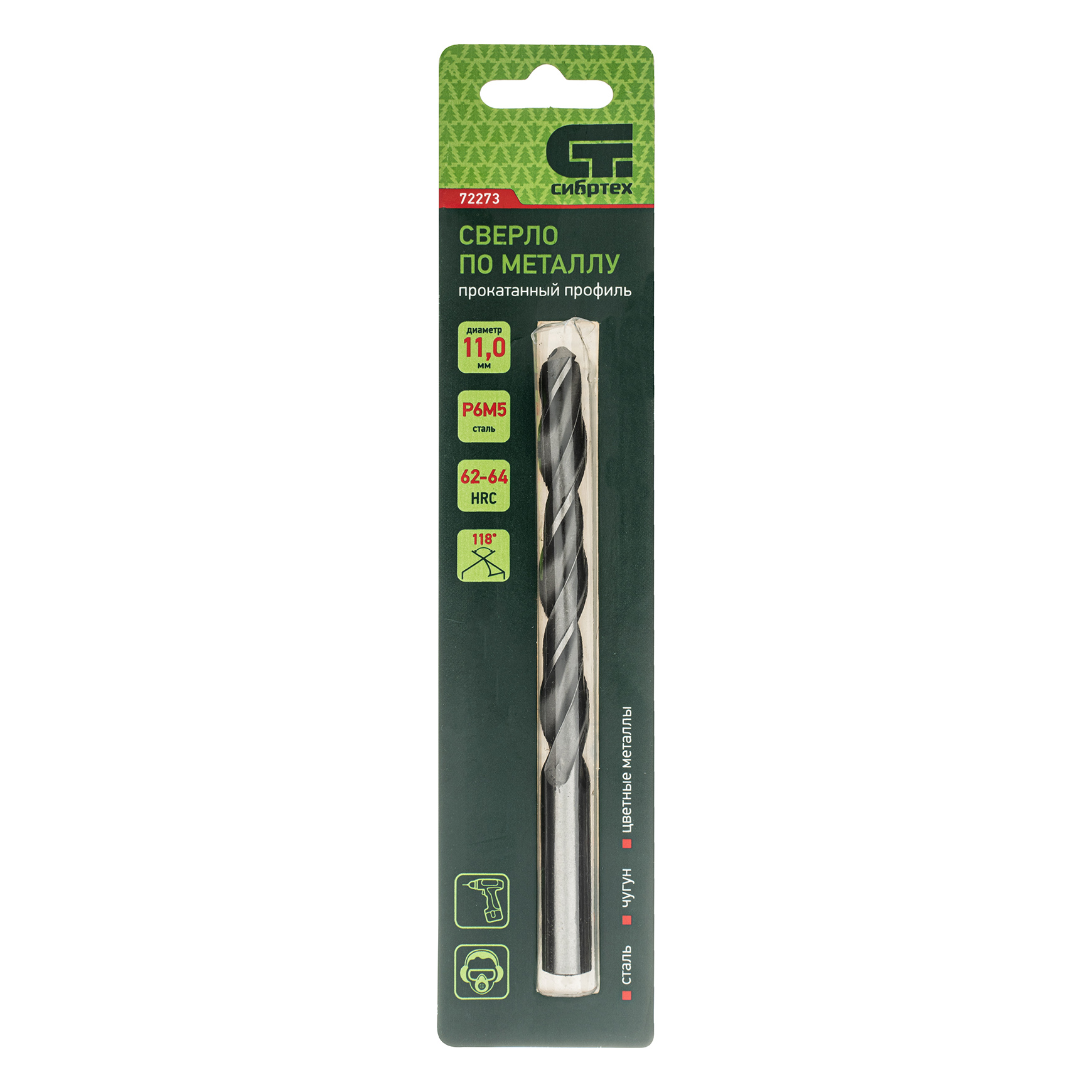 Сверло по металлу Сибртех 72273 диаметром 11,0 мм, имеет угол заточки 118°, оптимальный для получения отверстий в черных и тяжелых металлах, в том числе стали, чугуне и твердой бронзе. Отличается наиболее выгодной стоимостью по сравнению с другими моделями из стали P6M5. Используется для выполнения монтажно-сборочных работ, будет полезно в быту.