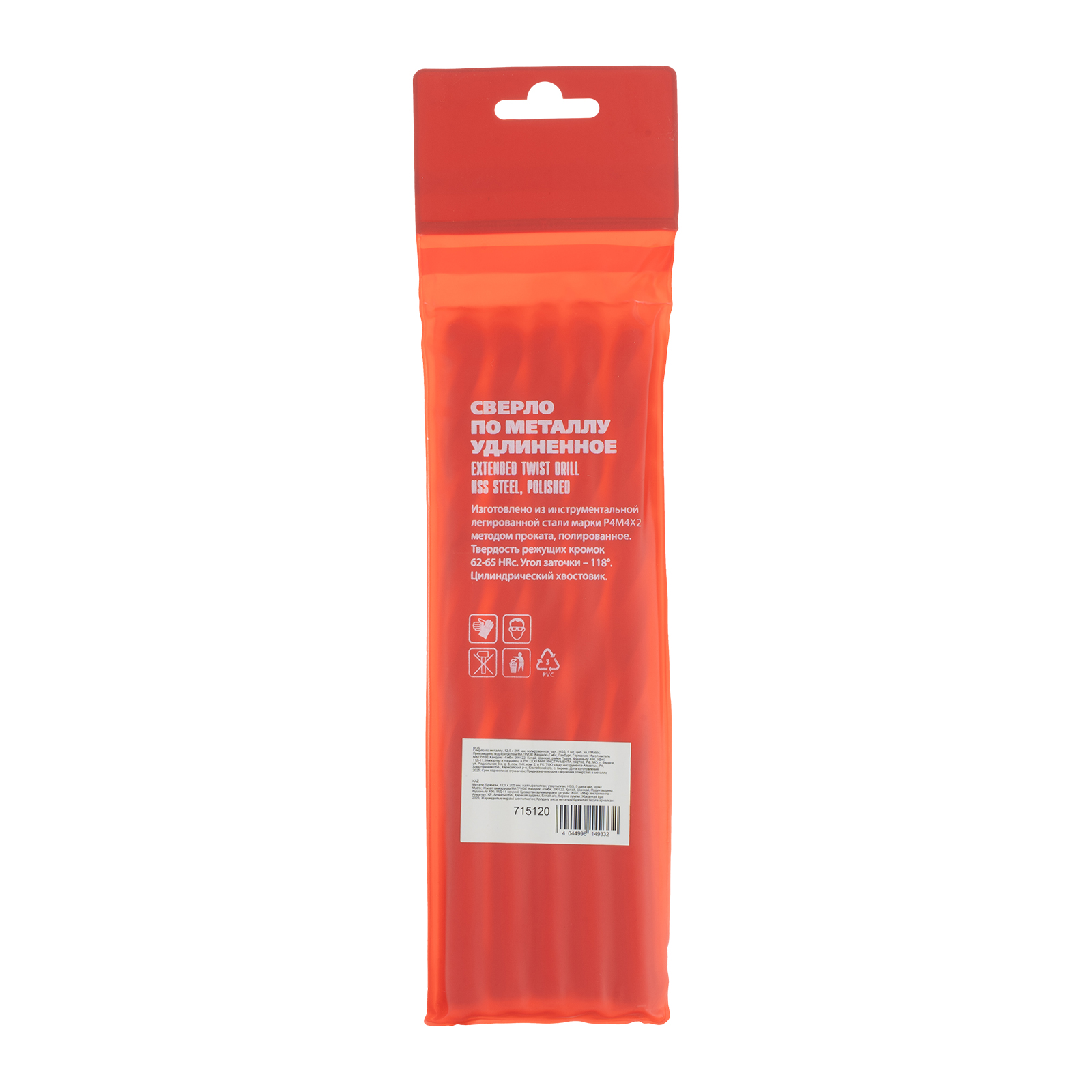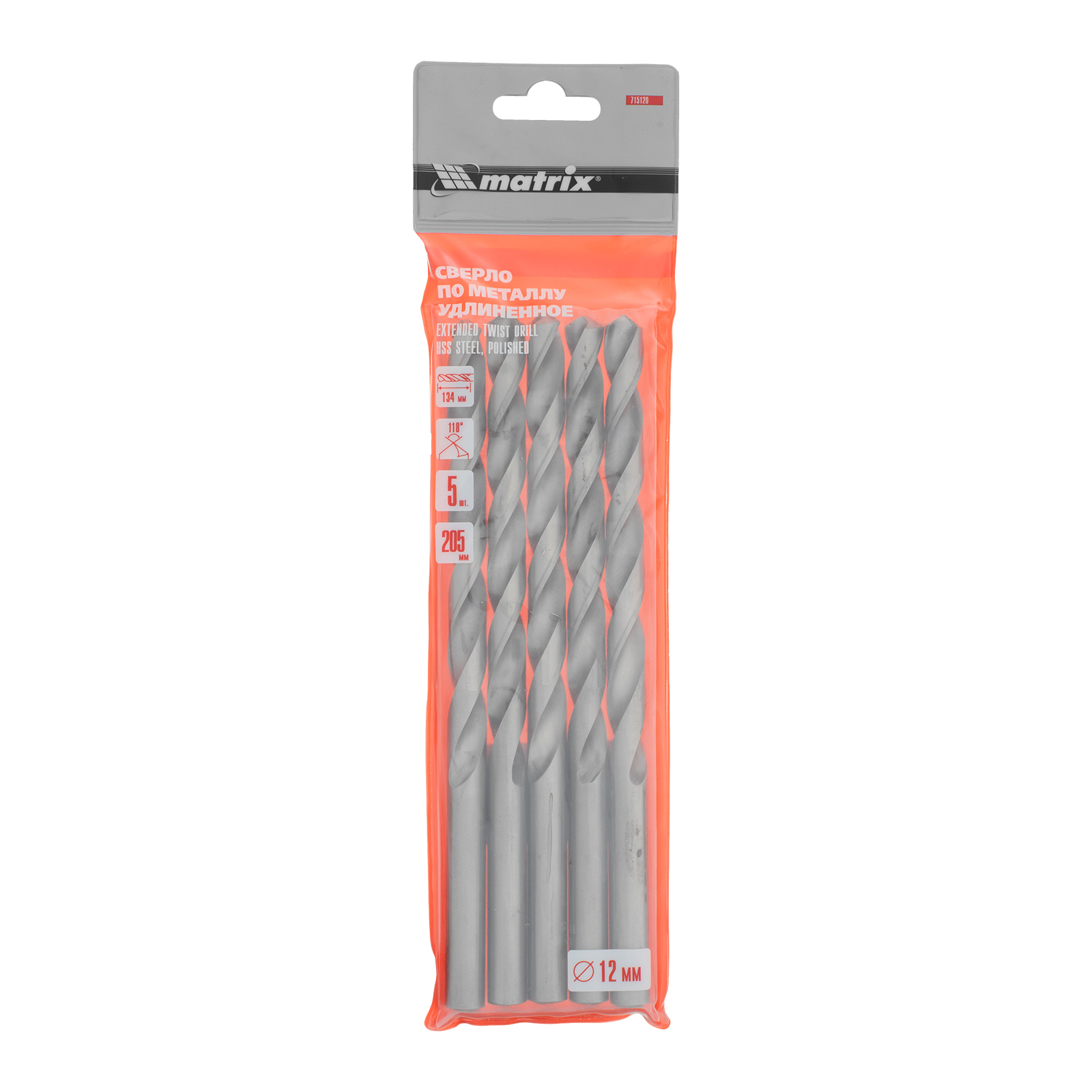 Полированное удлиненное сверло по металлу Matrix 715120 размером 12,0 х 205 мм, из стали HSS, с цилиндрическим хвостовиком, 5 шт. в упаковке, благодаря удлиненному профилю подходит для глубокого сверления. Угол заточки составляет 118° и является оптимальным для работы с черными металлами, сталью, чугуном и твердой бронзой.