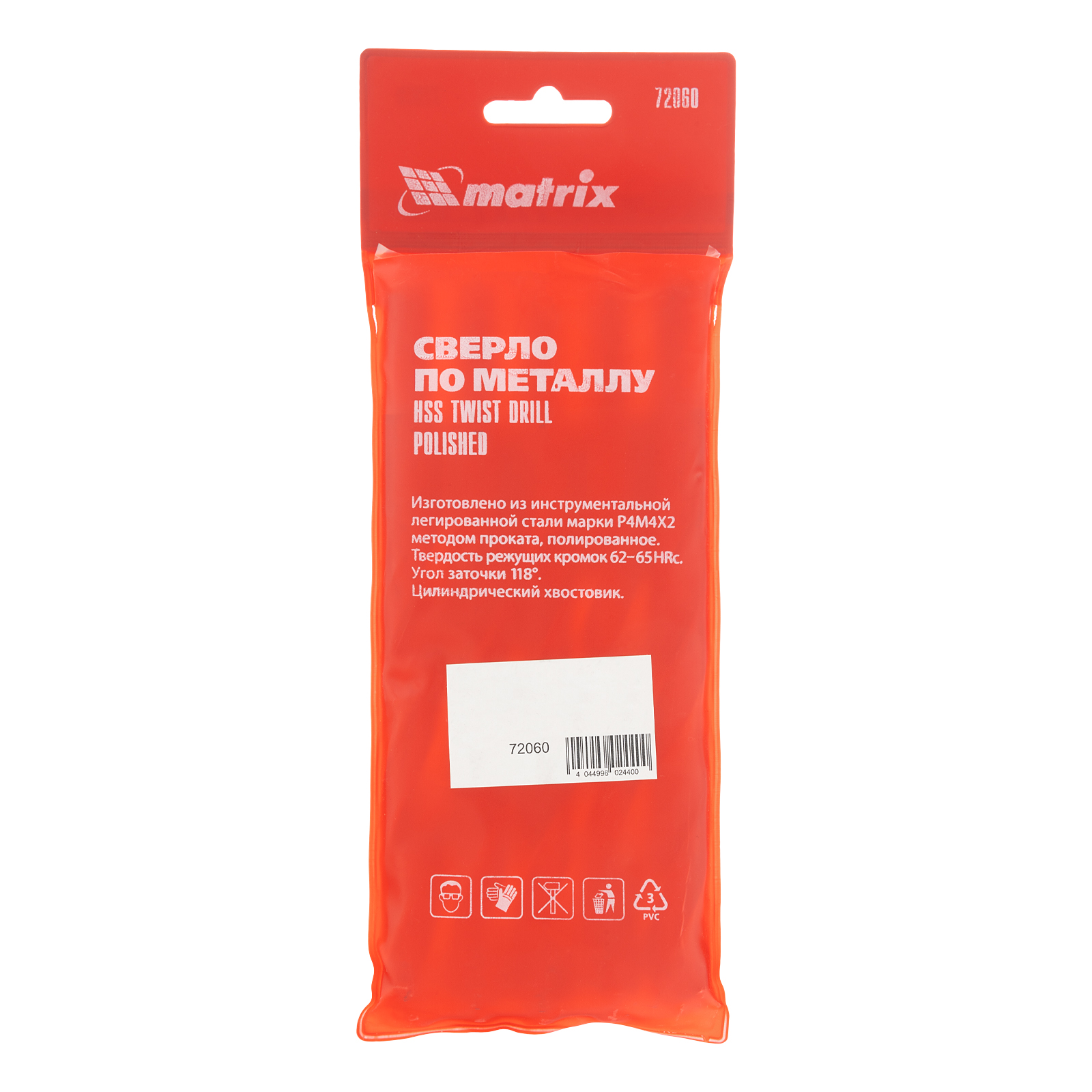 Полированное сверло по металлу Matrix 72060 из стали HSS, с цилиндрическим хвостовиком, 5 шт. в упаковке, используется для получения отверстий диаметром 16 мм. Угол заточки составляет 118°, поэтому сверло оптимально для работы с черными металлами, сталью, чугуном и твердой бронзой.