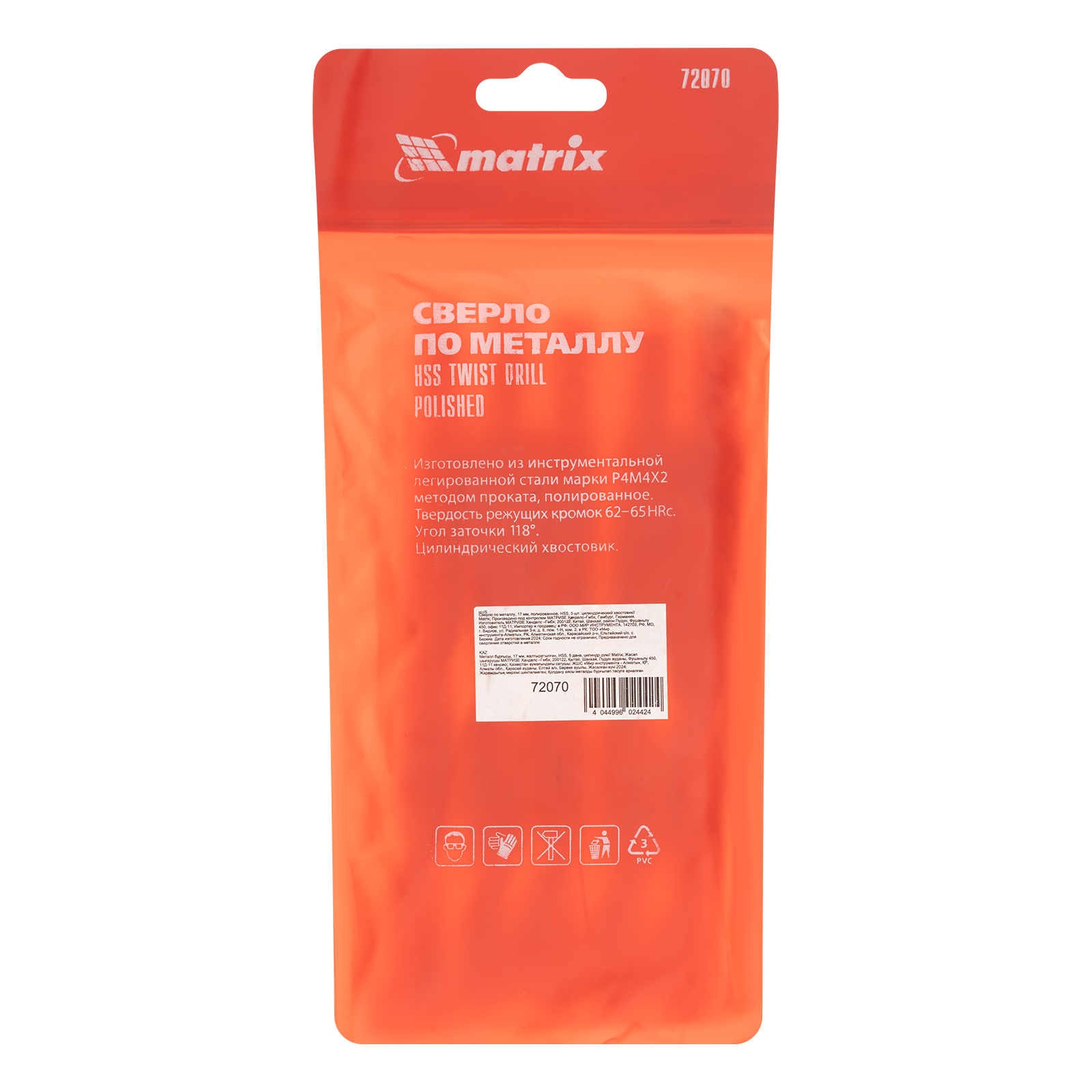 Полированное сверло по металлу Matrix 72070 из стали HSS, с цилиндрическим хвостовиком, 5 шт. в упаковке, используется для получения отверстий диаметром 17 мм. Угол заточки составляет 118°, поэтому сверло оптимально для работы с черными металлами, сталью, чугуном и твердой бронзой.
