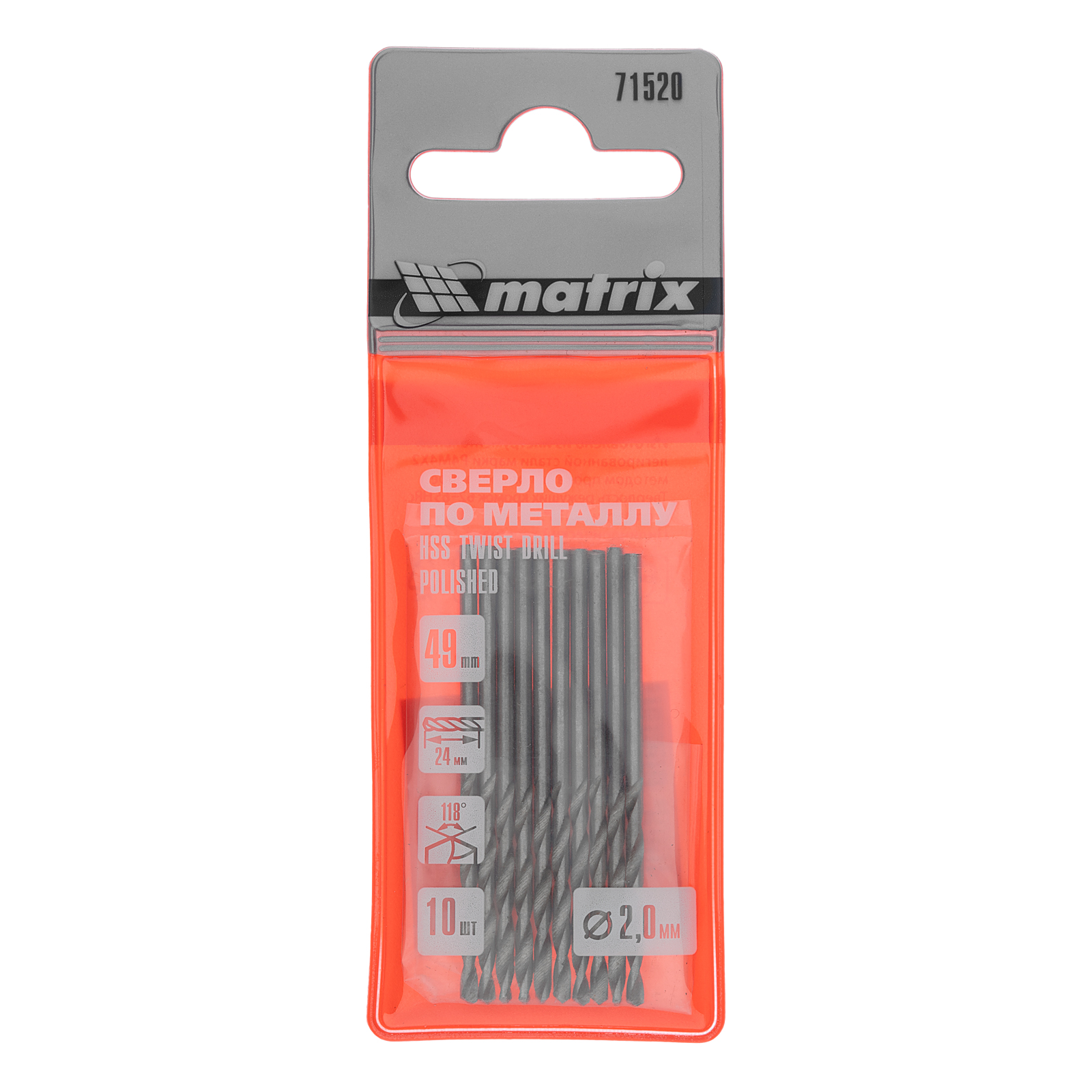 Полированное сверло по металлу Matrix 71520 из стали HSS, с цилиндрическим хвостовиком, 10 шт. в упаковке, используется для получения отверстий диаметром 2,0 мм. Угол заточки составляет 118 градусов, поэтому сверло оптимально для работы с черными металлами, сталью, чугуном и твердой бронзой.