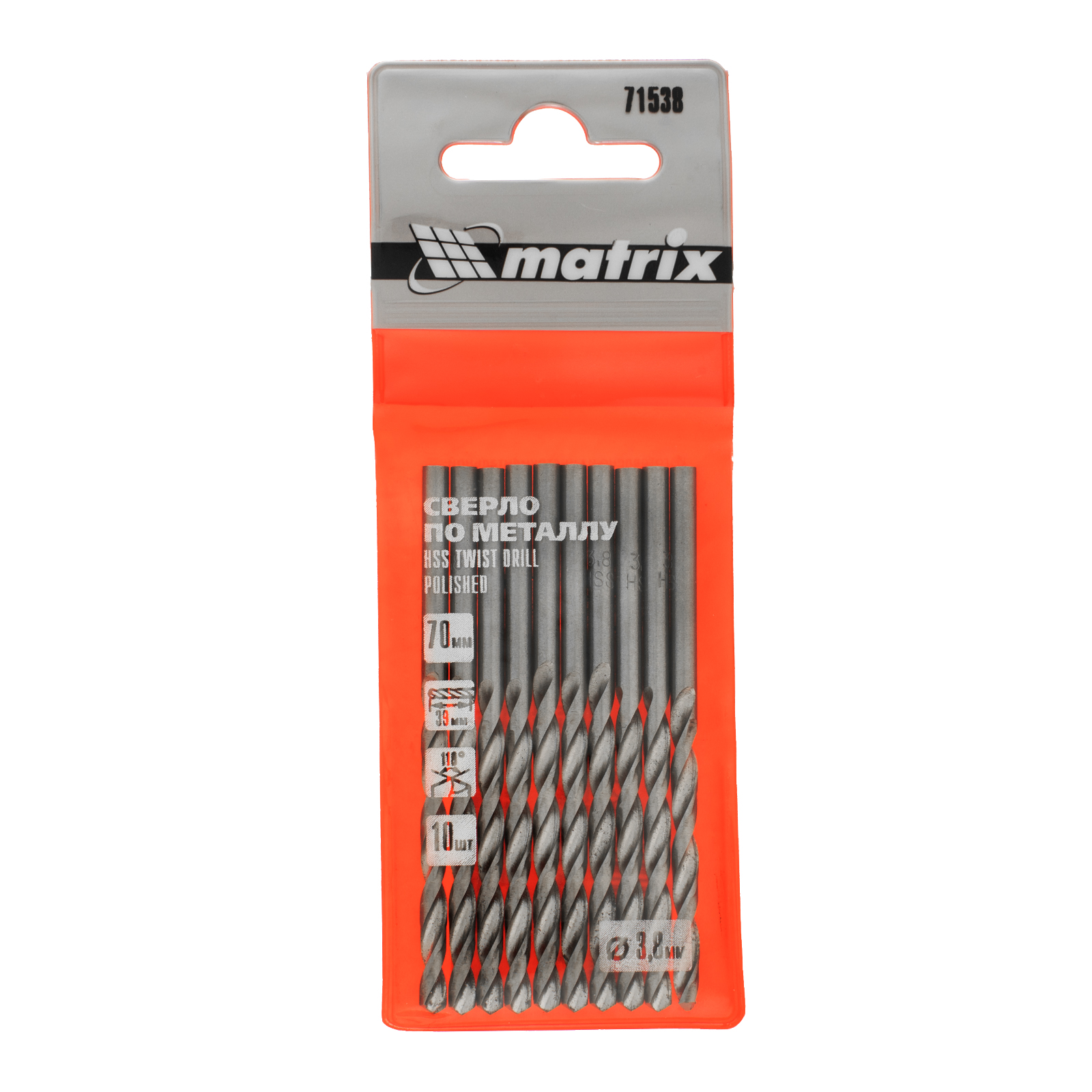 Полированное сверло по металлу Matrix 71538 из стали HSS, с цилиндрическим хвостовиком, 10 шт. в упаковке, используется для получения отверстий диаметром 3,8 мм. Угол заточки составляет 118°, поэтому сверло оптимально для работы с черными металлами, сталью, чугуном и твердой бронзой.