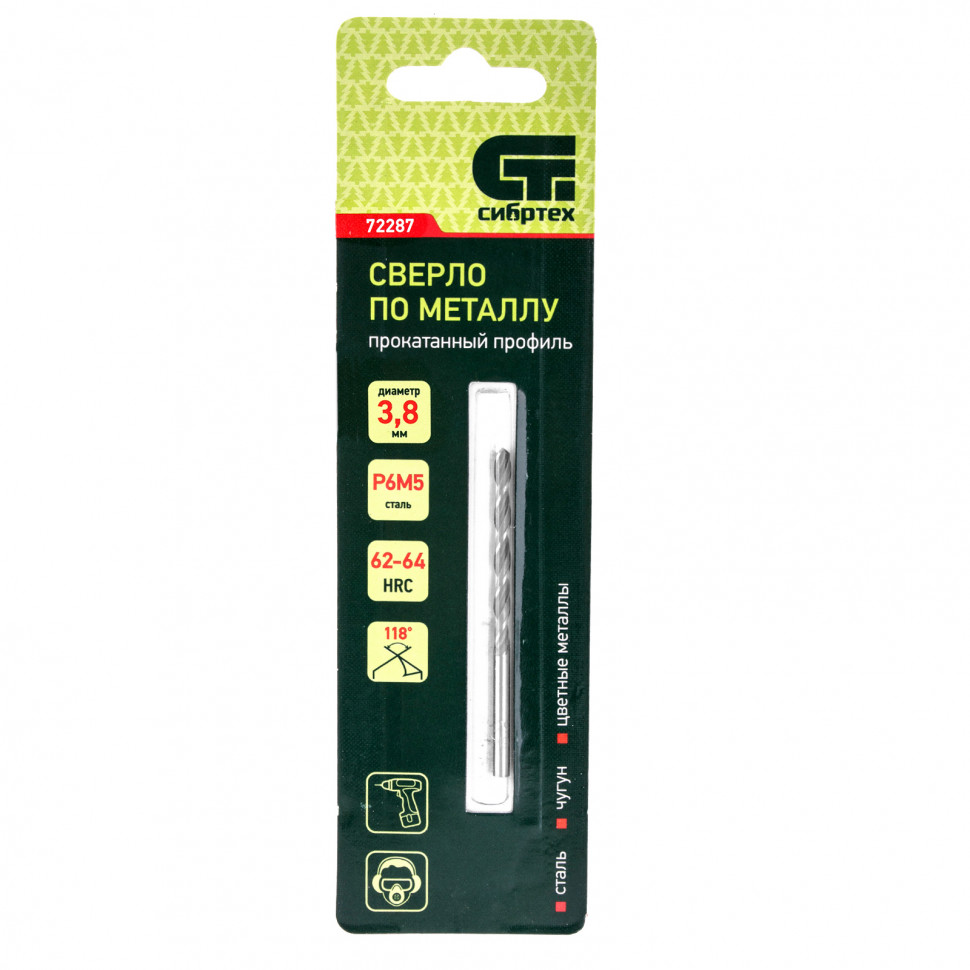 Сверло по металлу Сибртех 72287 диаметром 3,8 мм, имеет угол заточки 118°, оптимальный для получения отверстий в черных и тяжелых металлах, в том числе стали, чугуне и твердой бронзе. Отличается наиболее выгодной стоимостью по сравнению с другими моделями из стали P6M5. Используется для выполнения монтажно-сборочных работ, будет полезно в быту.