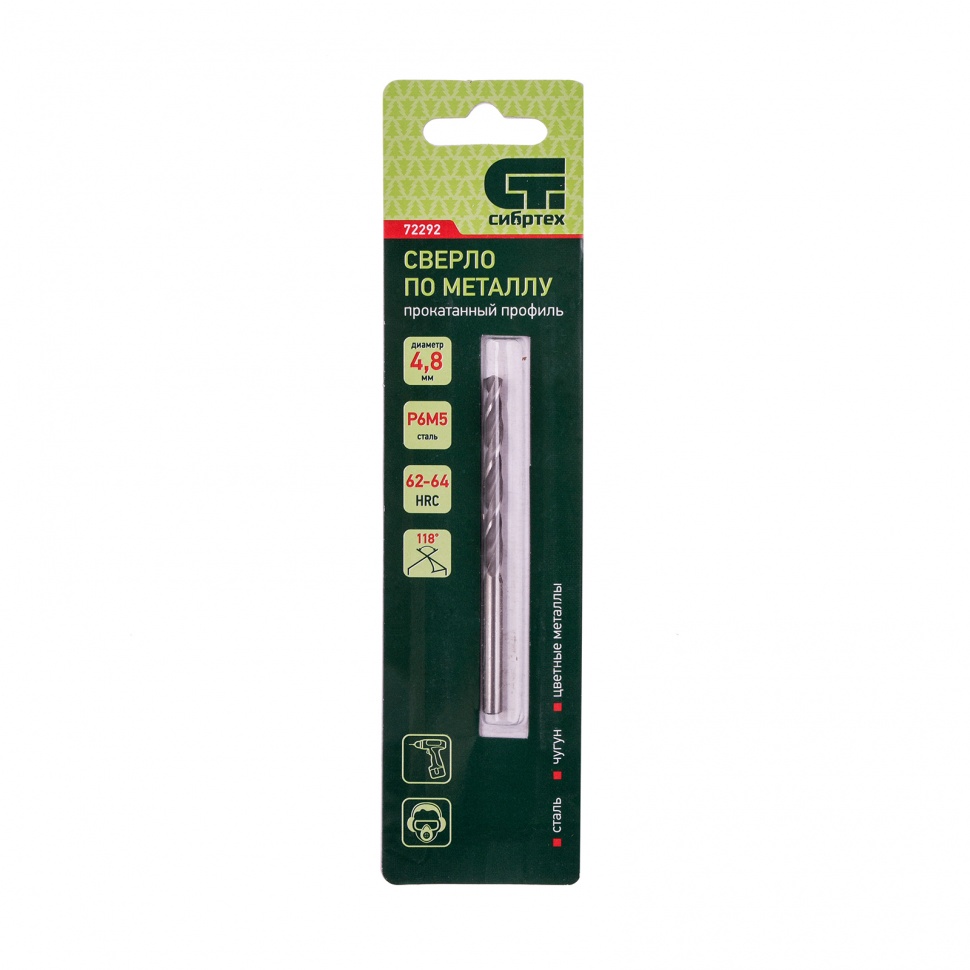 Сверло по металлу Сибртех 72292 диаметром 4,8 мм, имеет угол заточки 118°, оптимальный для получения отверстий в черных и тяжелых металлах, в том числе стали, чугуне и твердой бронзе. Отличается наиболее выгодной стоимостью по сравнению с другими моделями из стали P6M5. Используется для выполнения монтажно-сборочных работ, будет полезно в быту.