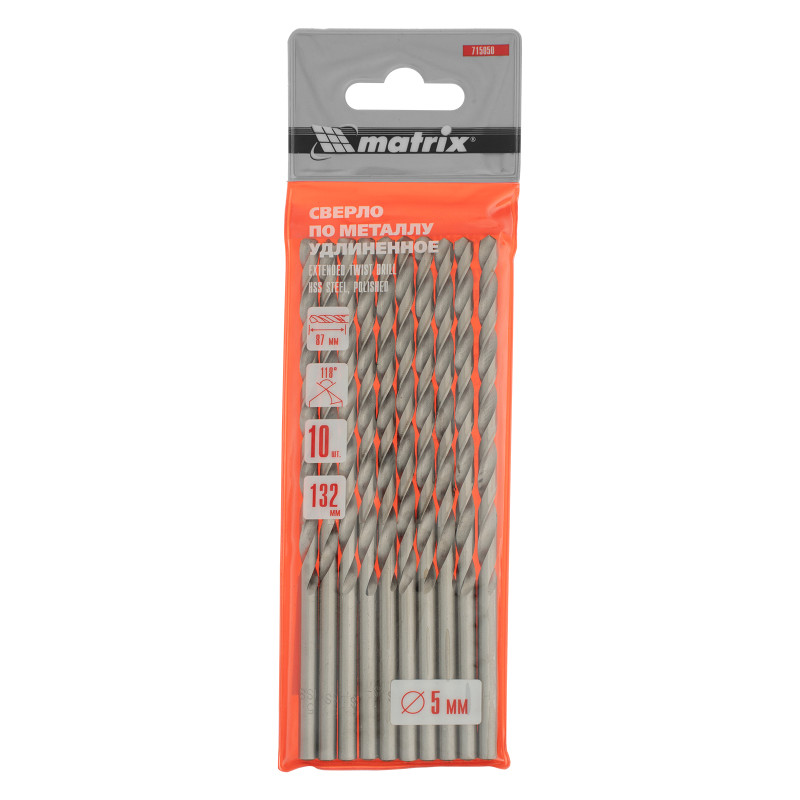 Полированное удлиненное сверло по металлу Matrix 715050 размером 5,0 х 132 мм, из стали HSS, с цилиндрическим хвостовиком, 10 шт. в упаковке, благодаря удлиненному профилю подходит для глубокого сверления. Угол заточки сверл составляет 118° и является оптимальным для работы с черными металлами, сталью, чугуном и твердой бронзой.