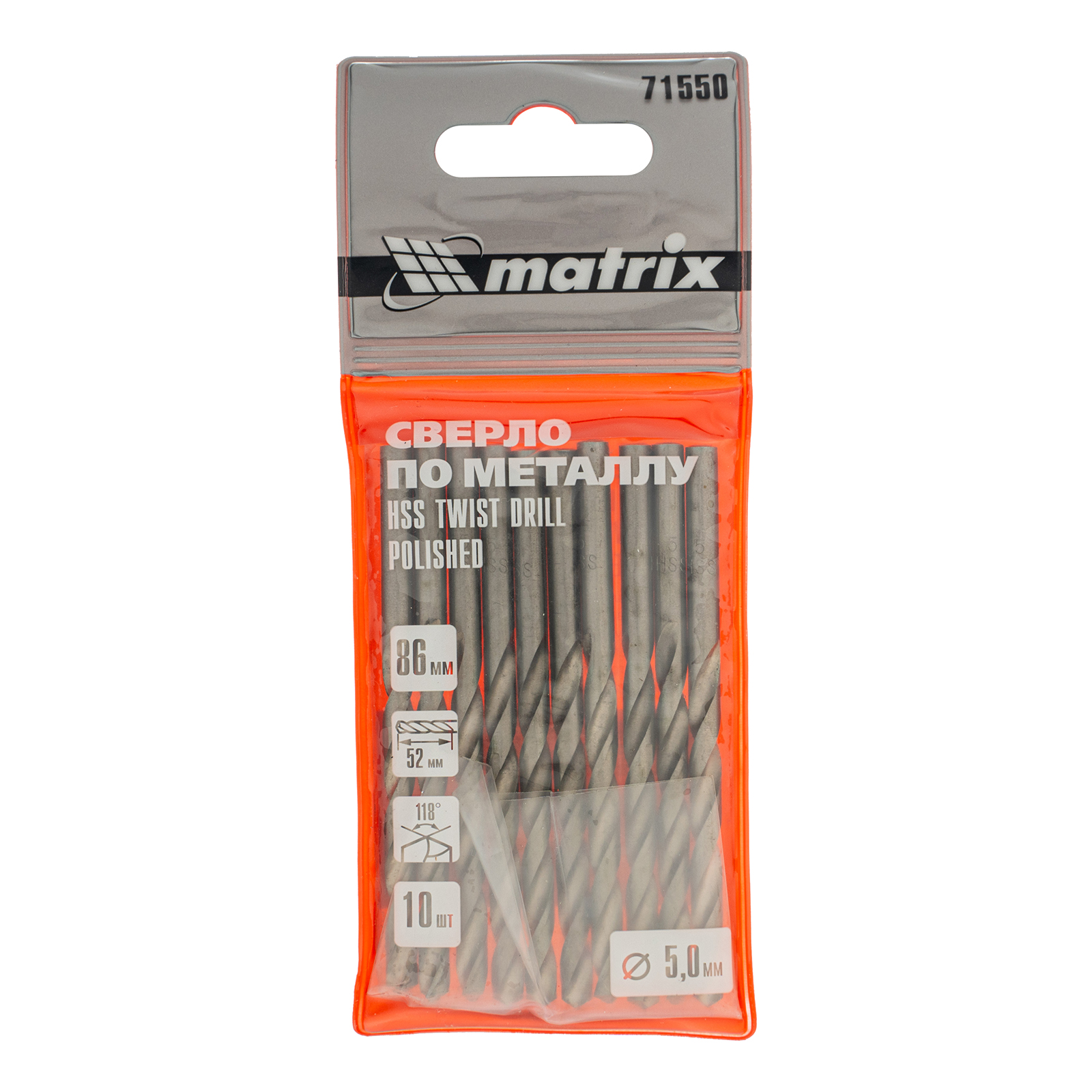 Полированное сверло по металлу Matrix 71550 из стали HSS, с цилиндрическим хвостовиком, 10 шт. в упаковке, используется для получения отверстий диаметром 5,0 мм. Угол заточки составляет 118 градусов, поэтому сверло оптимально для работы с черными металлами, сталью, чугуном и твердой бронзой.