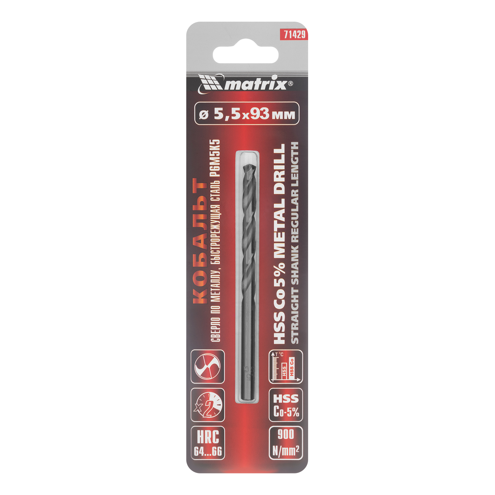 Сверло Matrix 71429 диаметром 5,5 мм, из стали HSS Co-5%, имеет угол заточки 135°, оптимальный для сверления легированных и цветных металлов. Подходит для профессионального использования на строительной площадке.