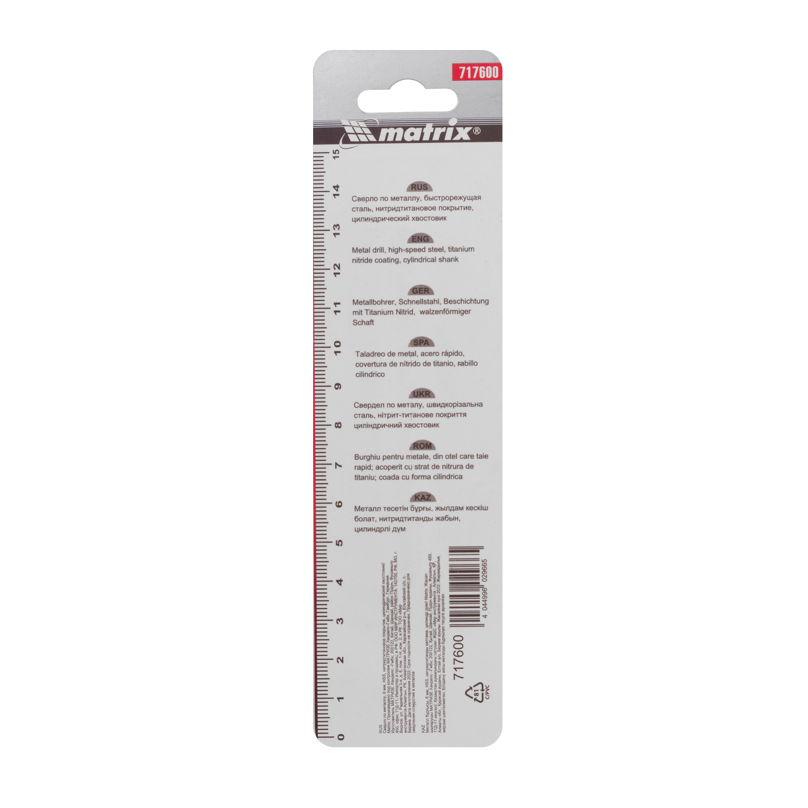 Сверло Matrix 717600 диаметром 6 мм, из стали HSS, с нитридтитановым покрытием и цилиндрическим хвостовиком, предназначено для получения отверстий в металле. Угол заточки 118° оптимален для работы с черными металлами, сталью, чугуном и твердой бронзой. Сверло выдерживает интенсивные нагрузки и подходит для профессионального использования.