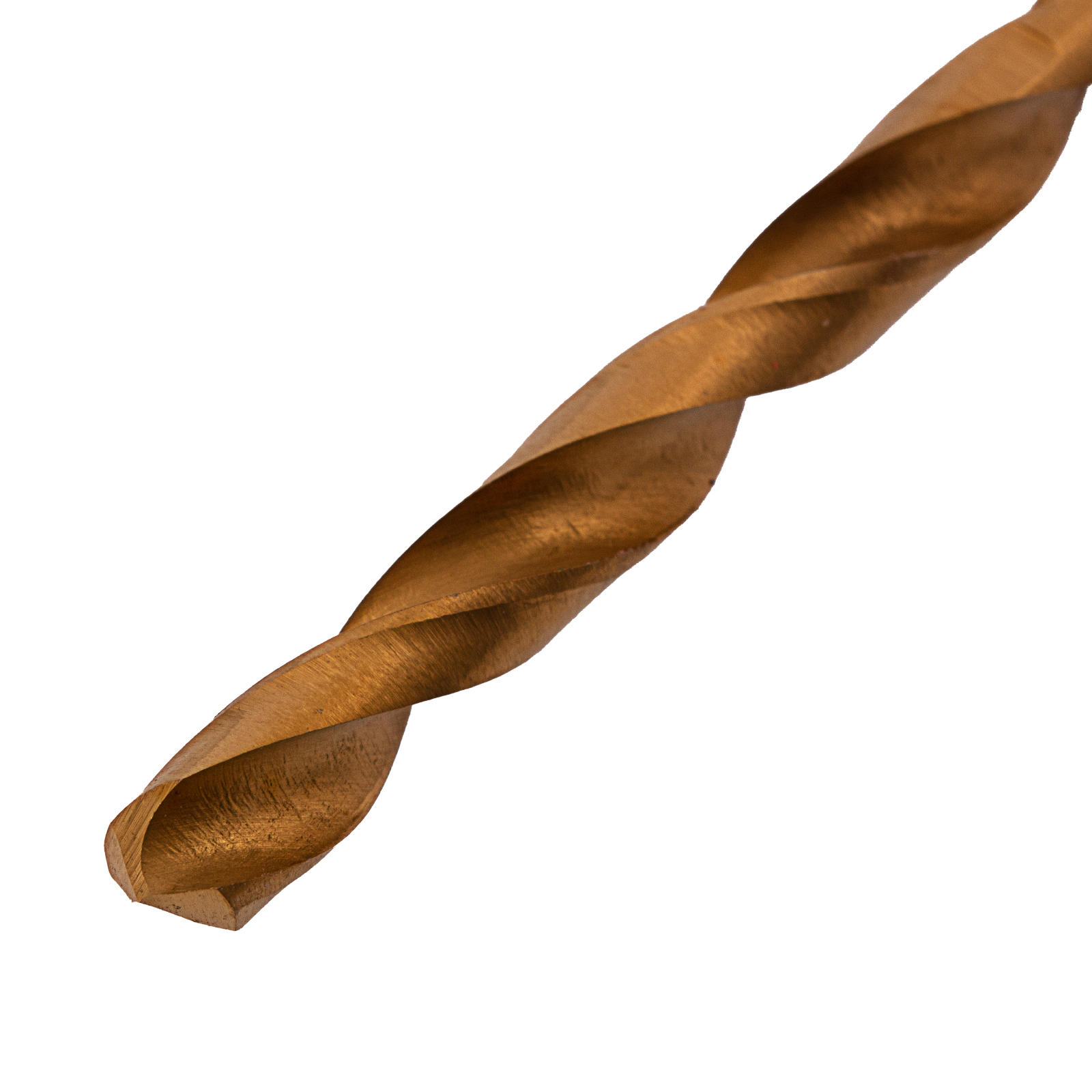 - Надежность — сверло изготовлено из универсальной быстрорежущей стали HSS, нитридтитановое покрытие защищает от коррозии и обеспечивает стойкость к перегреву.
