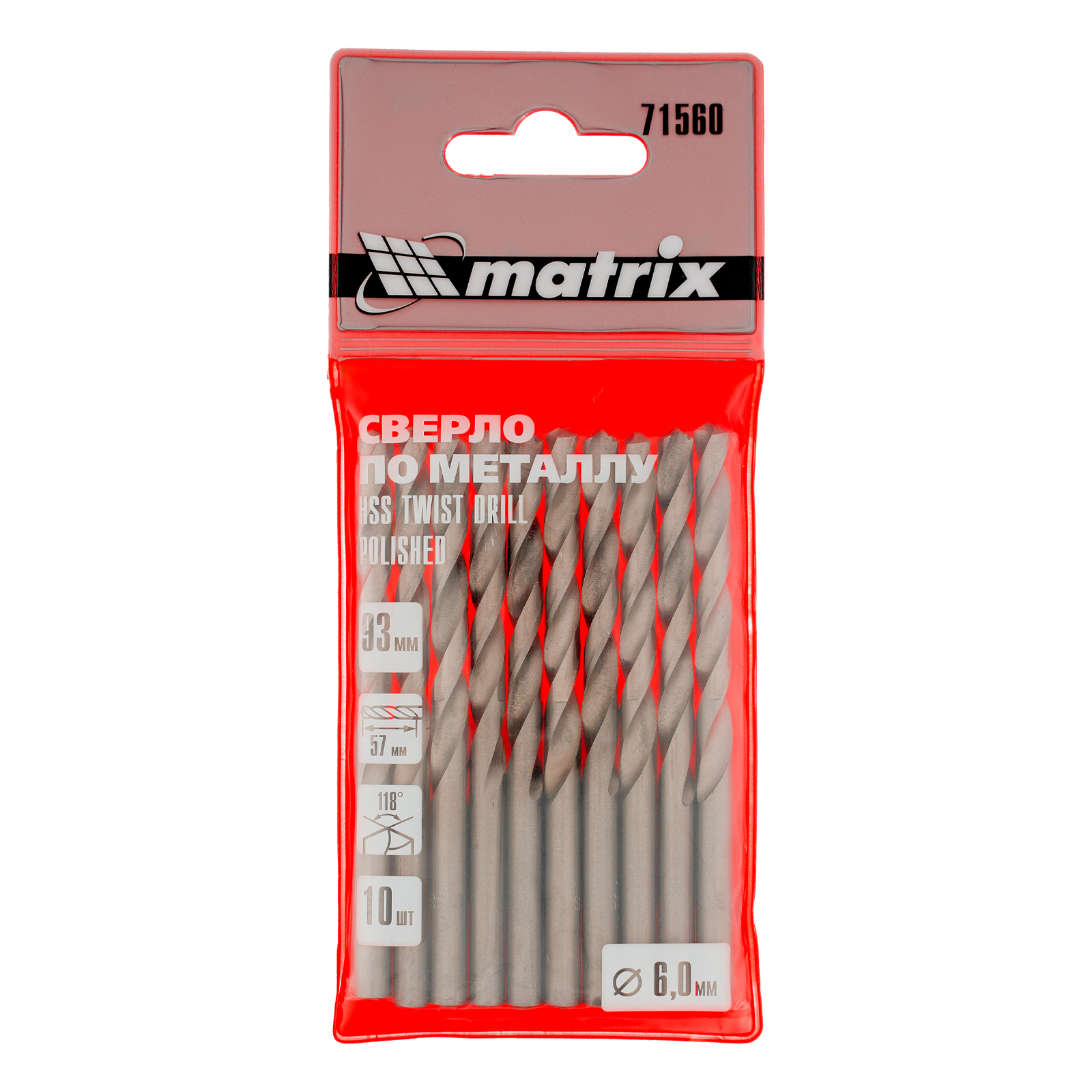 Полированное сверло по металлу Matrix 71560 из стали HSS, с цилиндрическим хвостовиком, 10 шт. в упаковке, используется для получения отверстий диаметром 6,0 мм. Угол заточки составляет 118 градусов, поэтому сверло оптимально для работы с черными металлами, сталью, чугуном и твердой бронзой.