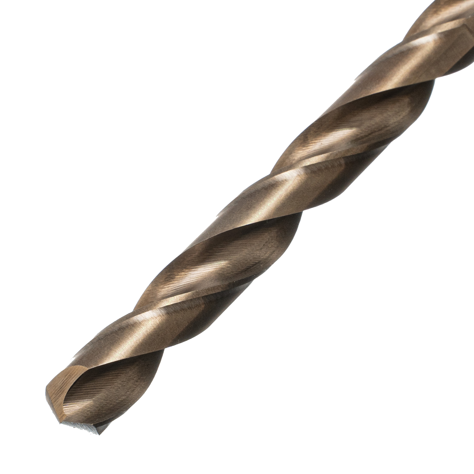 - Стойкость к износу и перегреву — сверло выполнено методом вышлифовывания профиля из качественной быстрорежущей стали с 5% содержанием кобальта и имеет увеличенную сердцевину.