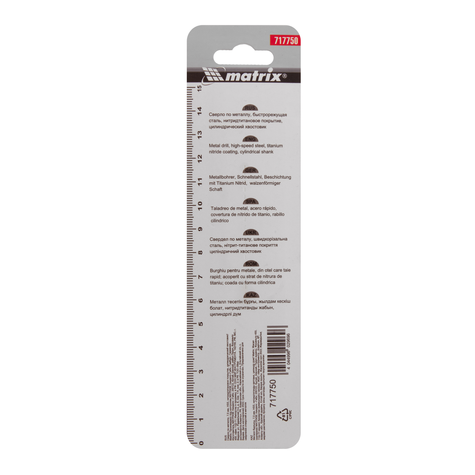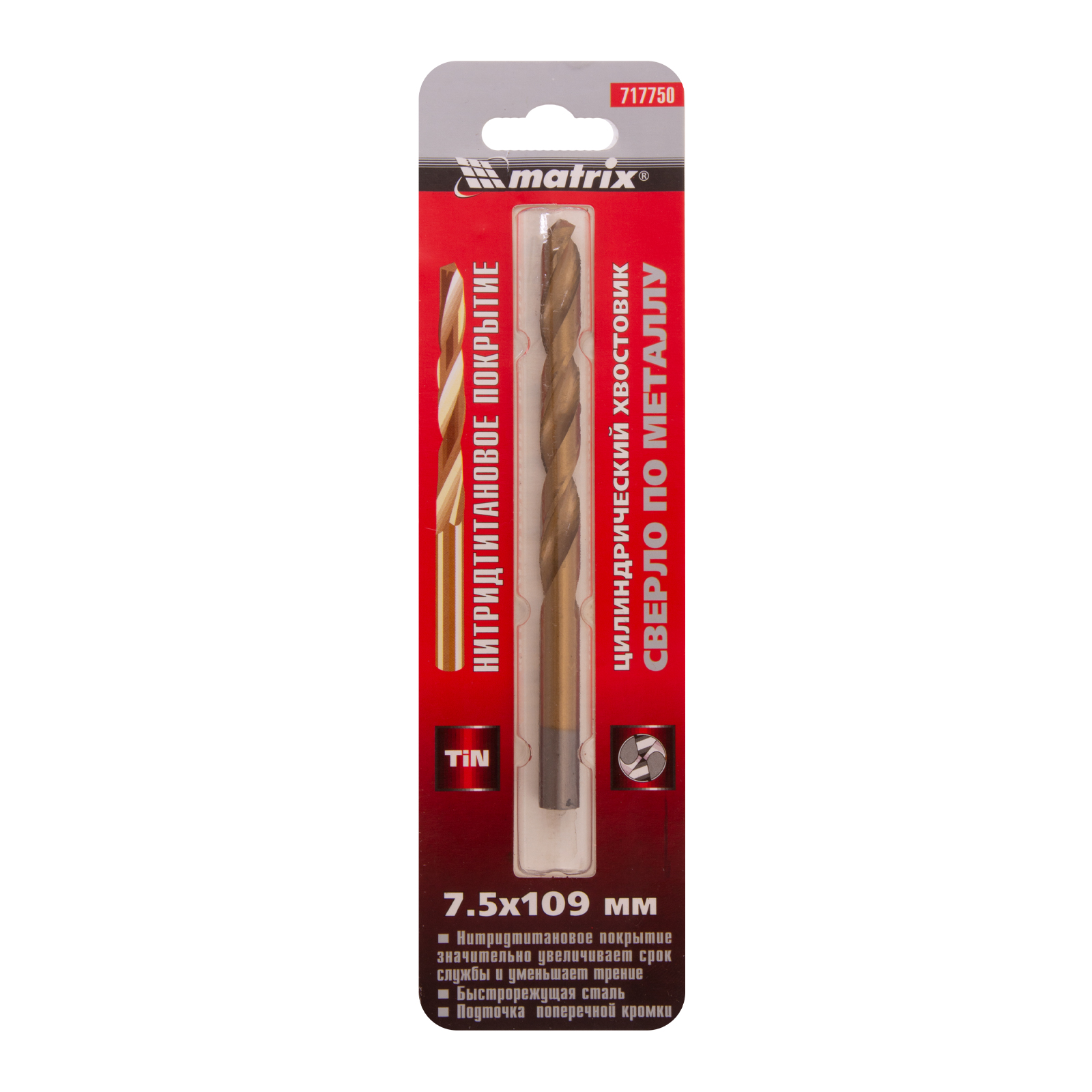 Сверло Matrix 717750 диаметром 7,5 мм, из стали HSS, с нитридтитановым покрытием и цилиндрическим хвостовиком, предназначено для получения отверстий в металле. Угол заточки 118° оптимален для работы с черными металлами, сталью, чугуном и твердой бронзой. Сверло выдерживает интенсивные нагрузки и подходит для профессионального использования.