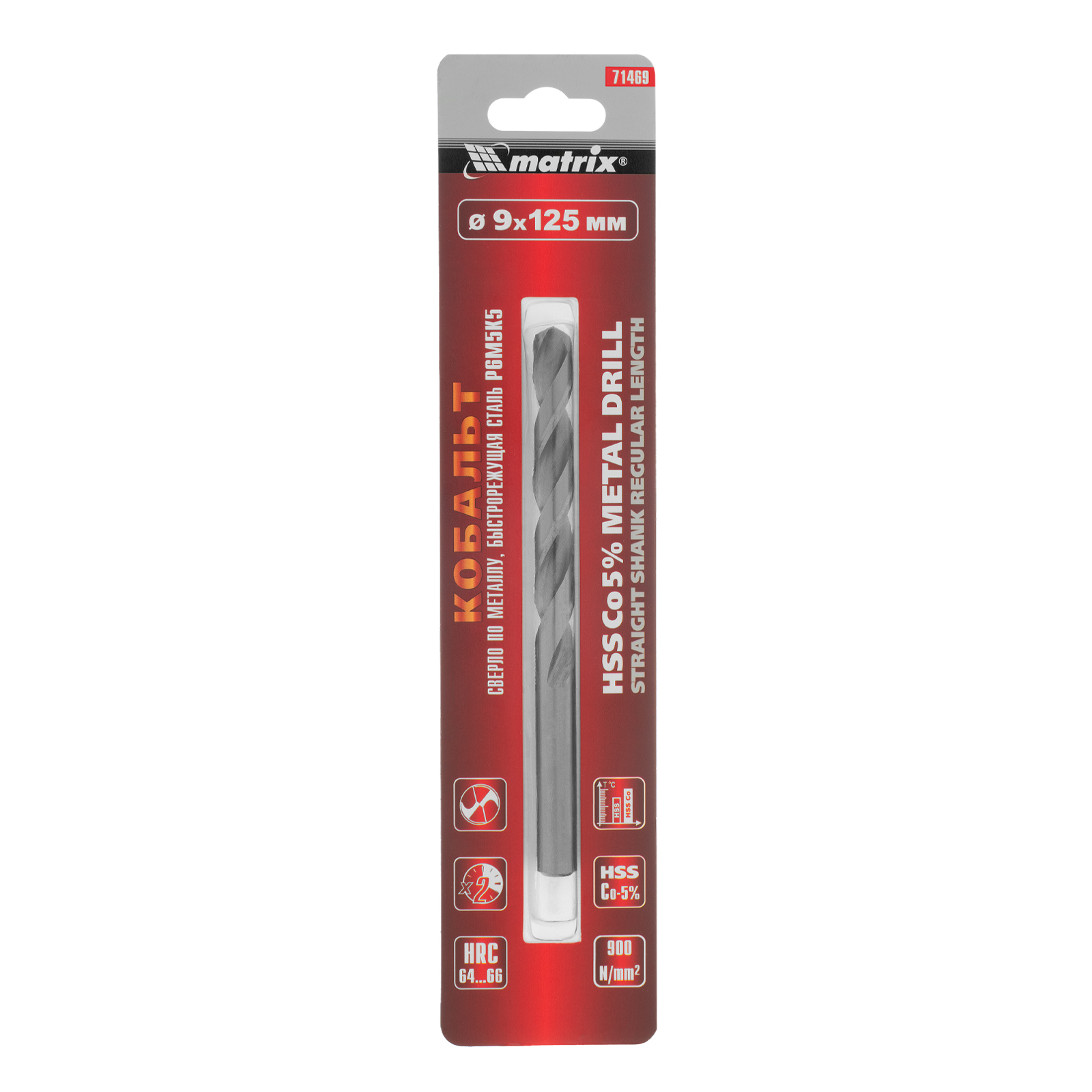 Сверло Matrix 71469 диаметром 9 мм, из стали HSS Co-5%, имеет угол заточки 135°, оптимальный для сверления легированных и цветных металлов. Подходит для профессионального использования на строительной площадке.