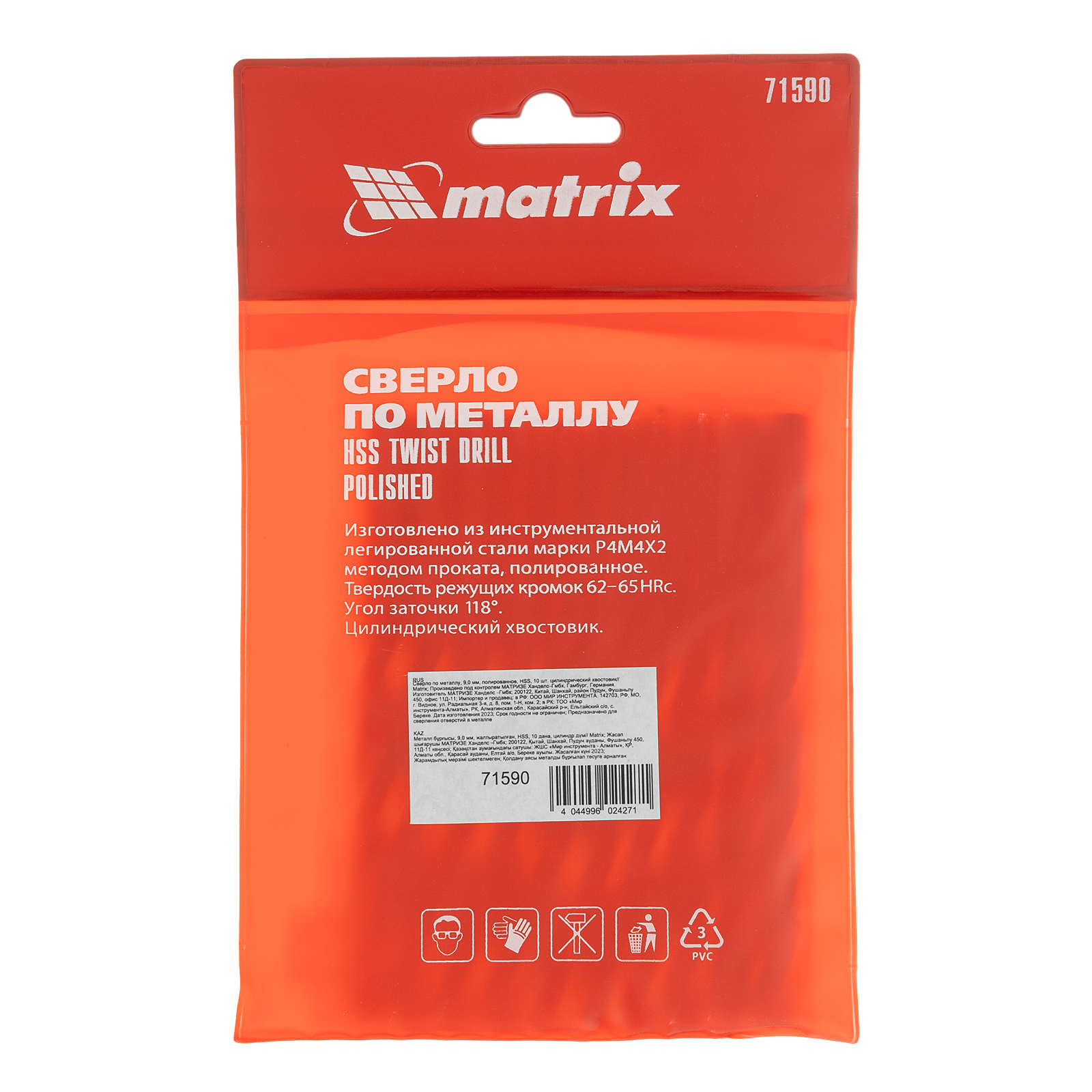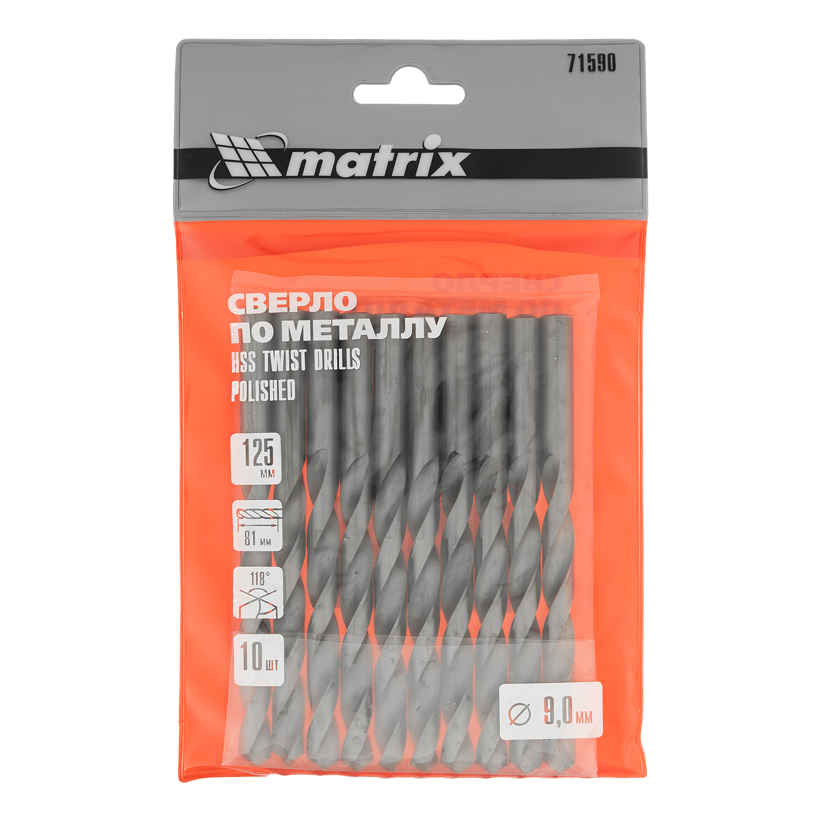 Полированное сверло по металлу Matrix 71590 из стали HSS, с цилиндрическим хвостовиком, 10 шт. в упаковке, используется для получения отверстий диаметром 9,0 мм. Угол заточки составляет 118 градусов, поэтому сверло оптимально для работы с черными металлами, сталью, чугуном и твердой бронзой.