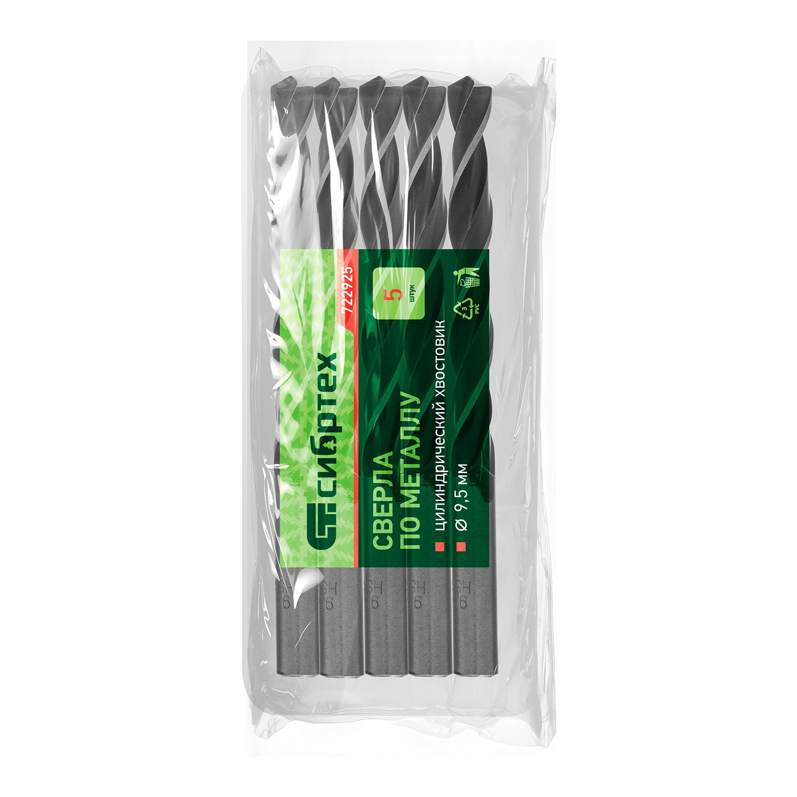 Сверло по металлу Сибртех 722925 из быстрорежущей стали, с цилиндрическим хвостовиком, 5 шт. в упаковке, имеет угол заточки 118° и используется для получения отверстий диаметром 9,5 мм в цветных и тяжелых металлах. Инструмент применяется в профессиональных и бытовых целях.