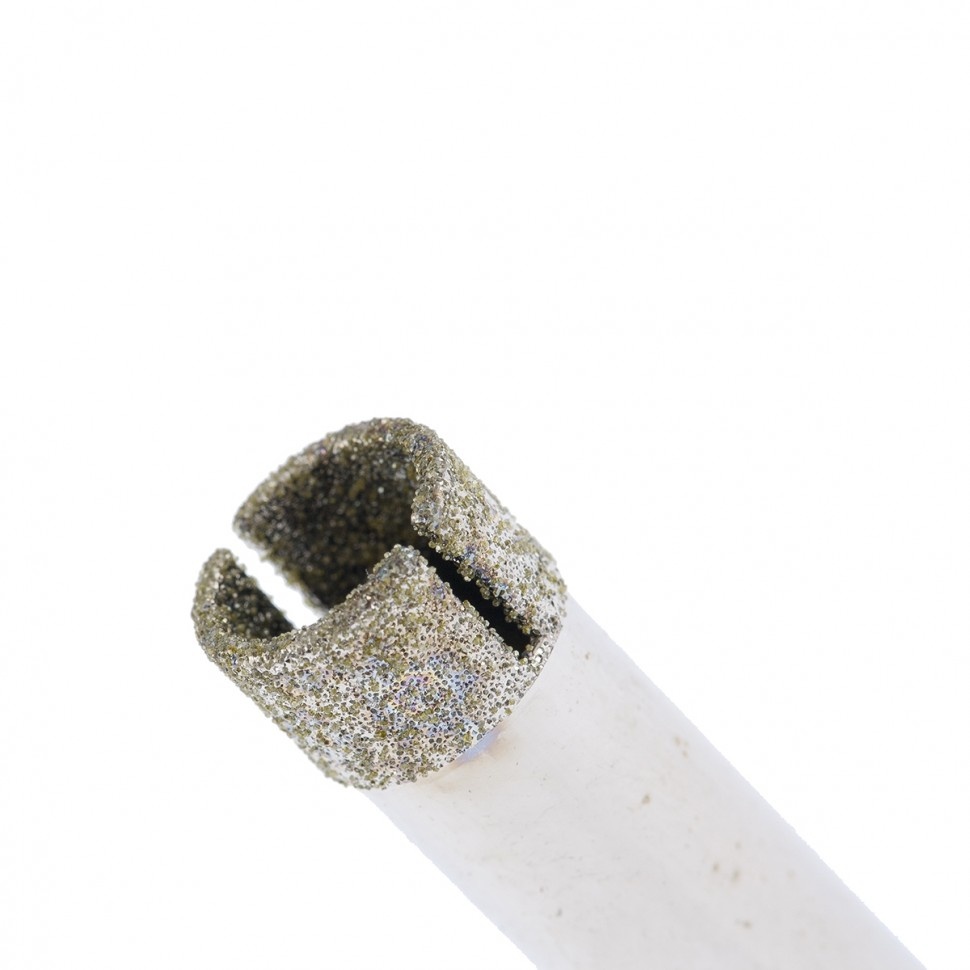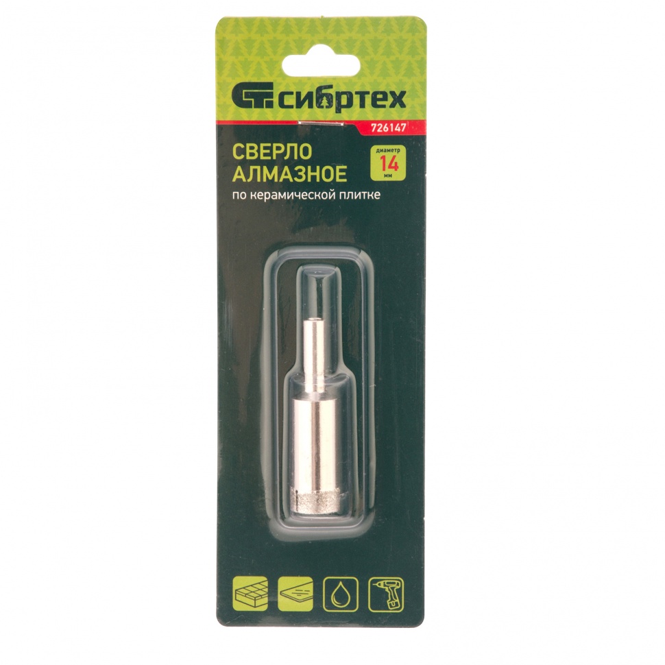 Сверло Сибртех 726147 размером 14 х 55 мм, с цилиндрическим хвостовиком, используется для получения ровных отверстий без сколов в стекле и керамической плитке. Устанавливается в патрон дрели или шуруповерта, работающих в диапазоне 350-700 об/мин. Во время работы рекомендуется применять водяное охлаждение — это существенно увеличит ресурс оснастки. Использование кондуктора (арт. 72830) позволяет точно позиционировать сверло и облегчает засверливание. Оснастка подходит для выполнения работ небольшого объема и рекомендована для использования в быту.