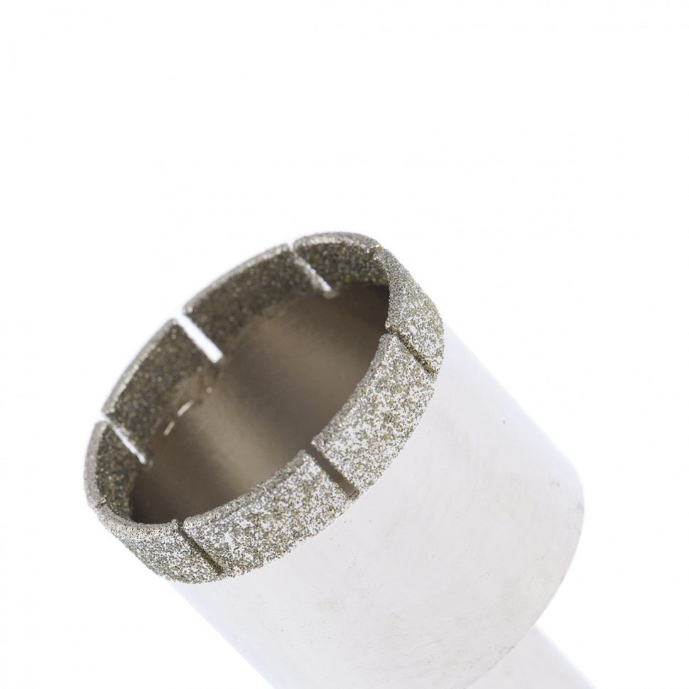 Сверло Сибртех 726387 размером 38 х 55 мм, с цилиндрическим хвостовиком, используется для получения ровных отверстий без сколов в стекле и керамической плитке. Устанавливается в патрон дрели или шуруповерта, работающих в диапазоне 350-700 об/мин. Во время работы рекомендуется применять водяное охлаждение — это существенно увеличит ресурс оснастки. Использование кондуктора (арт. 72830) позволяет точно позиционировать сверло и облегчает засверливание. Оснастка подходит для выполнения работ небольшого объема и рекомендована для использования в быту.