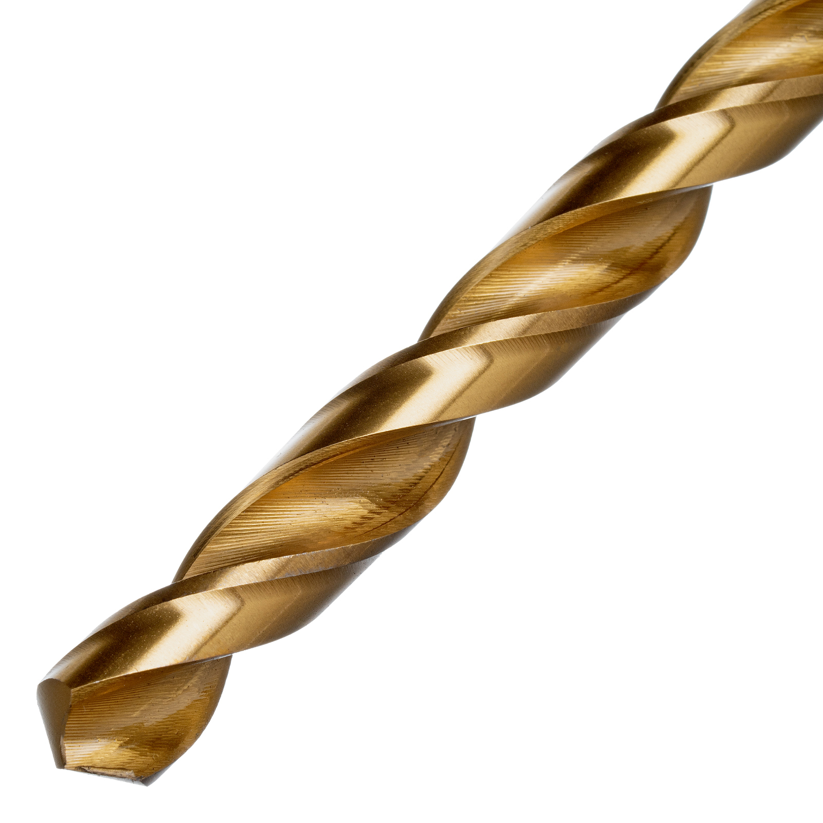 - Надежность — сверло изготовлено из универсальной быстрорежущей стали HSS, нитридтитановое покрытие защищает от коррозии и обеспечивает стойкость к перегреву.