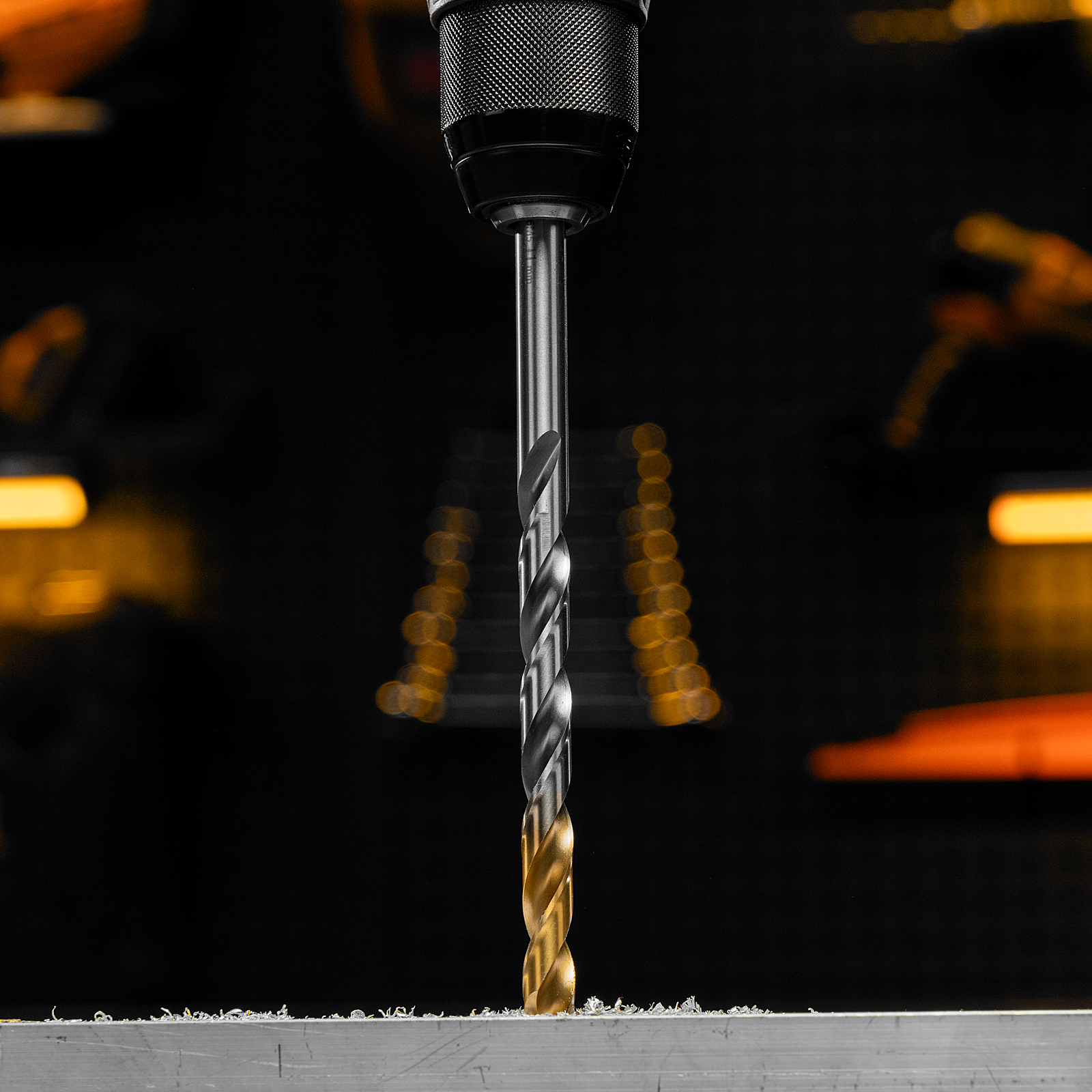 - Высокая производительность — поверхность сверла покрыта нитридом титана, что снижает трение о стенки отверстия и уменьшает нагрев, а также улучшает отвод стружки.