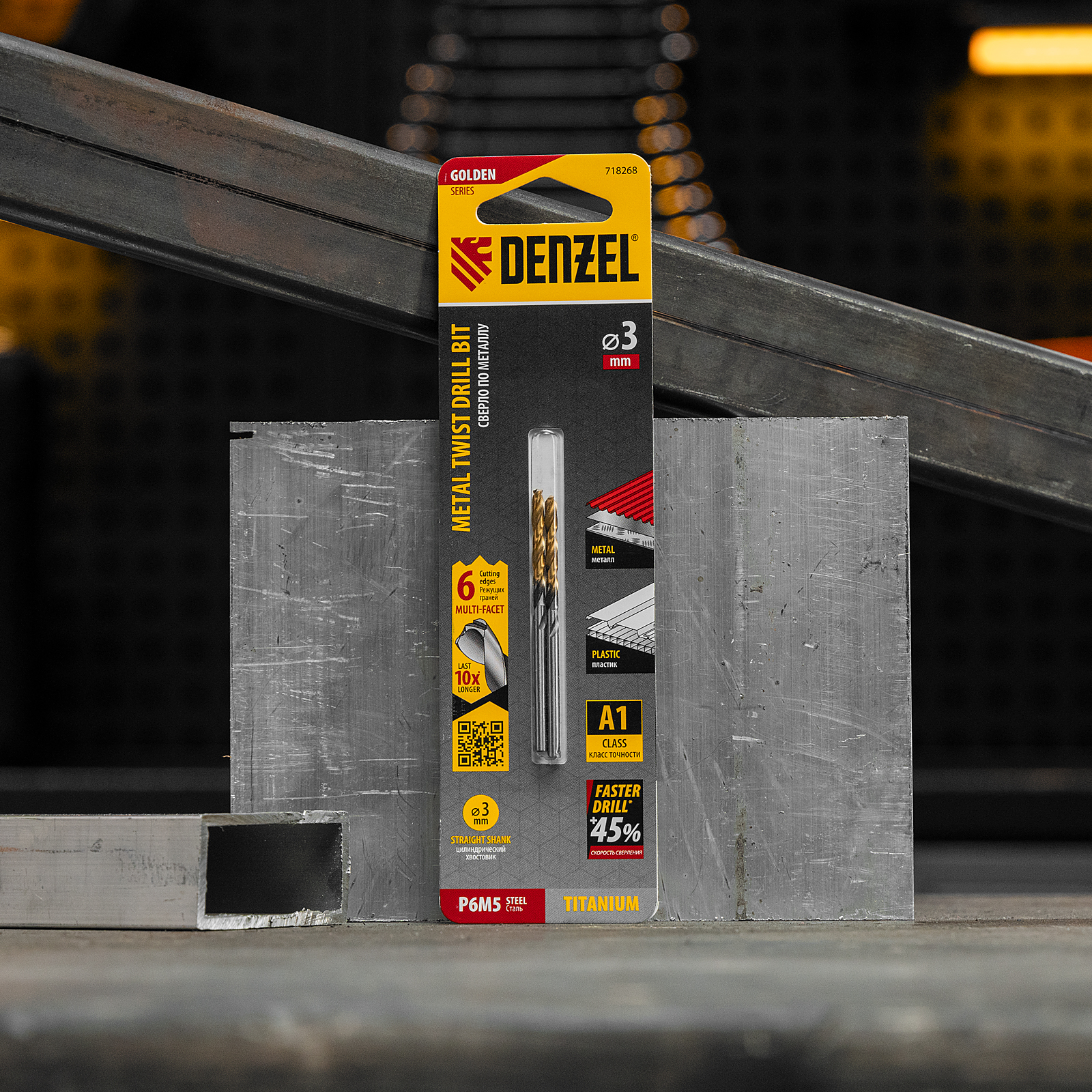 Спиральное сверло по металлу Denzel Golden Tip 718268 из стали P6M5, размером 3 х 61 мм, с многогранной заточкой, 2 штуки в упаковке, предназначено для получения отверстий в легированных сталях и цветных металлах. Многогранная заточка позволяет получать чистые и ровные отверстия практически без заусенцев. Сверлу присвоен класс точности A, что гарантирует высокое качество работ. Оснастка подходит для бытового и профессионального применения.