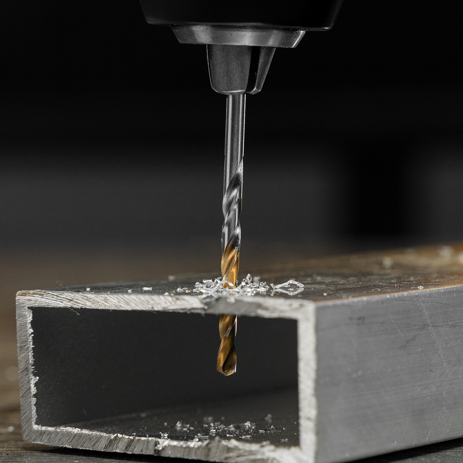 - Высокая производительность — поверхность сверла покрыта нитридом титана, что снижает трение о стенки отверстия и уменьшает нагрев, а также улучшает отвод стружки.