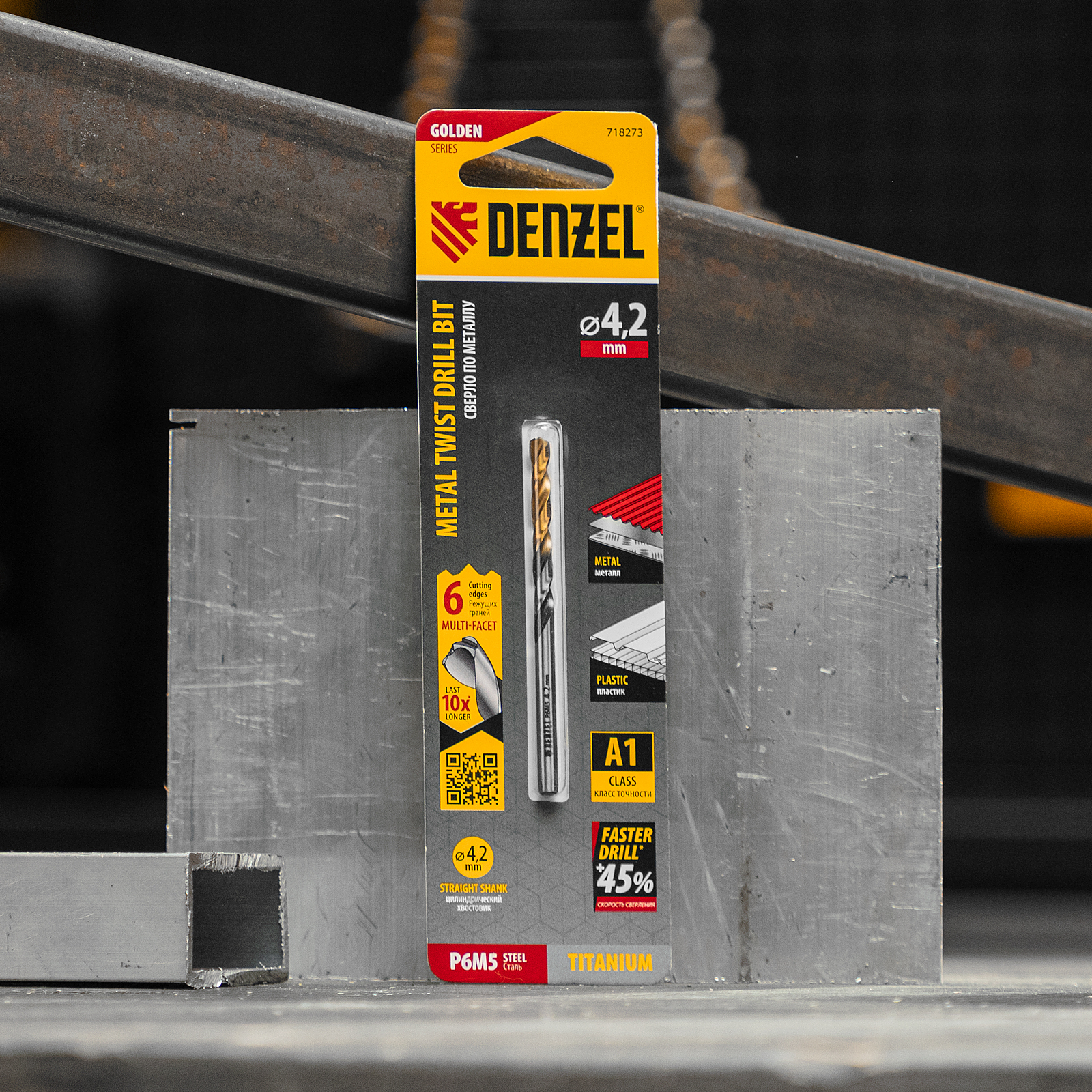 Спиральное сверло по металлу Denzel Golden Tip 718273 из стали P6M5, размером 4,2 х 75 мм, с многогранной заточкой, предназначено для получения отверстий в легированных сталях и цветных металлах. Многогранная заточка позволяет получать чистые и ровные отверстия практически без заусенцев. Сверлу присвоен класс точности A, что гарантирует высокое качество работ. Оснастка подходит для бытового и профессионального применения.
