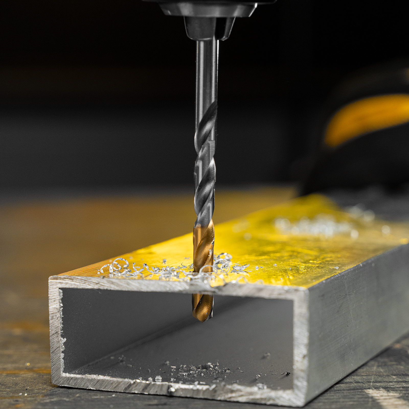 - Высокая производительность — поверхность сверла покрыта нитридом титана, что снижает трение о стенки отверстия и уменьшает нагрев, а также улучшает отвод стружки.