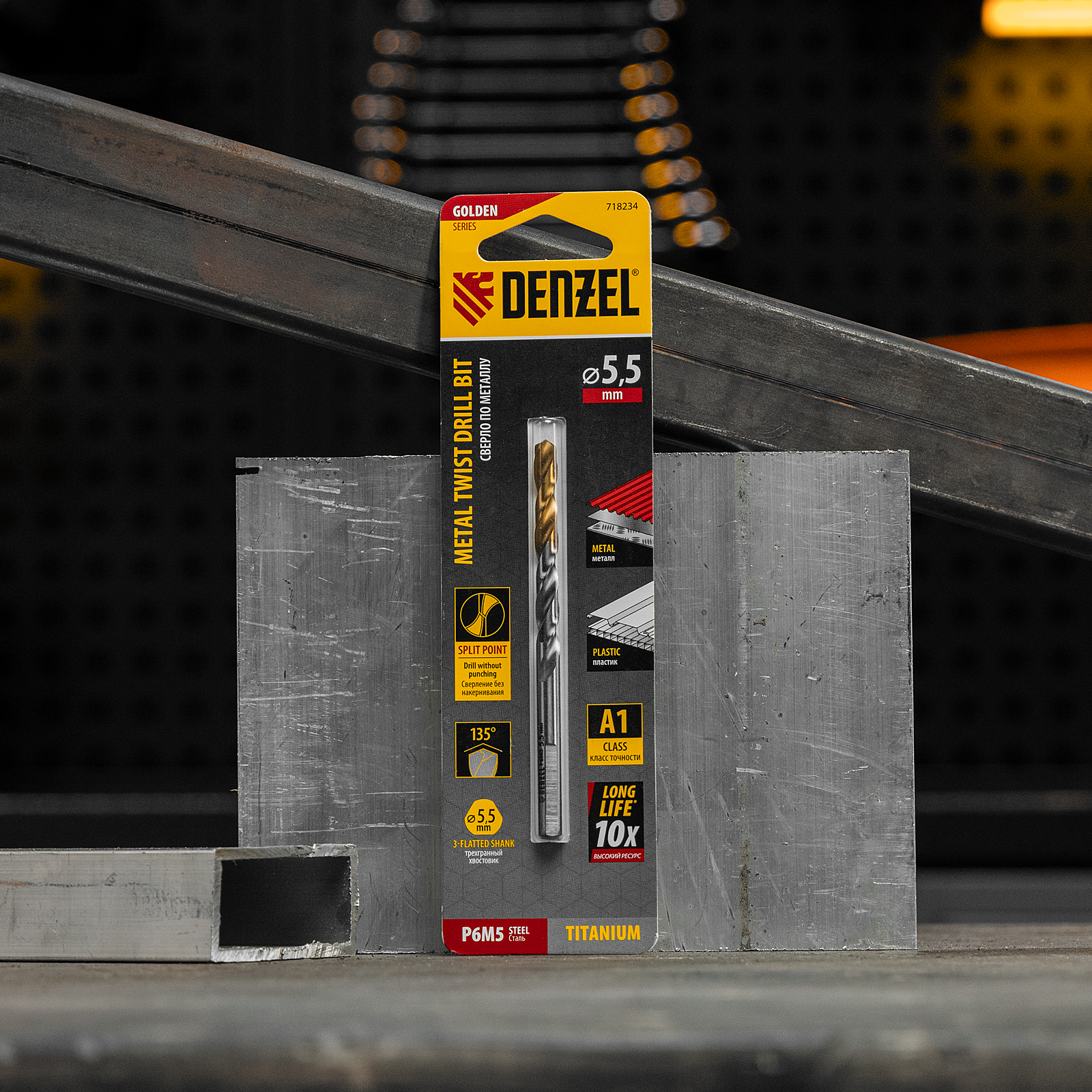 Спиральное сверло по металлу Denzel Golden Tip 718234 из стали P6M5, размером 5,5 х 93 мм, предназначено для получения отверстий в легированных и цветных металлах — меди, алюминии, мягкой бронзе, титане, латуни. Оснастка позволяет эффективно справляться с поставленными задачами благодаря оптимальному углу заточки 135°. Класс точности A гарантирует высокое качество полученных отверстий. Сверло используется для проведения монтажно-сборочных работ.