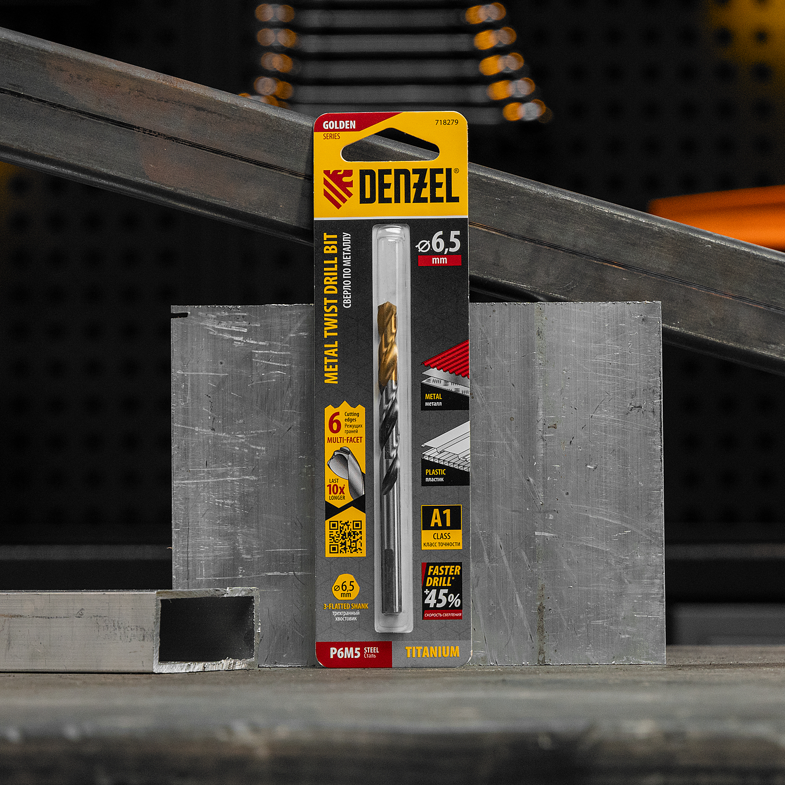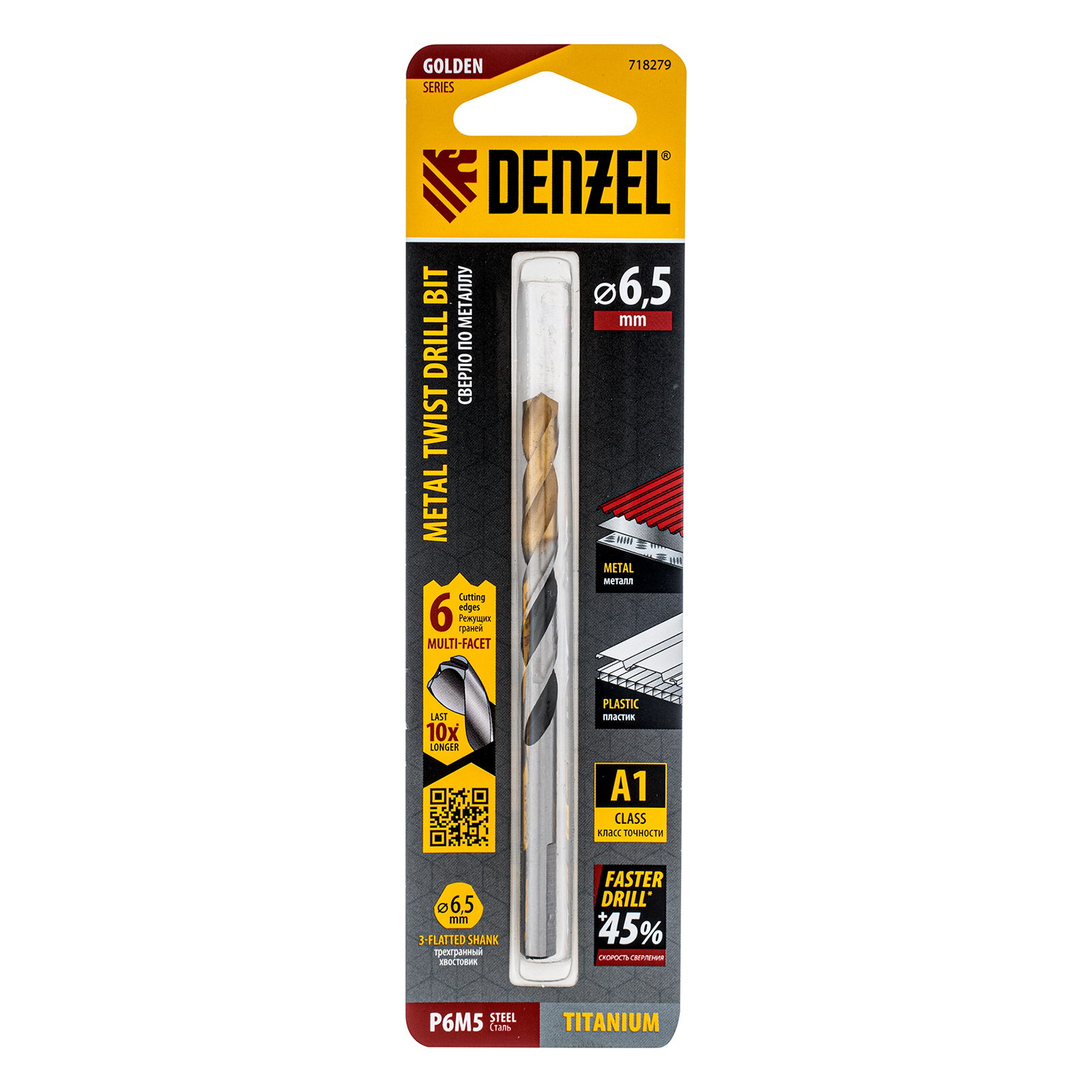 Спиральное сверло по металлу Denzel Golden Tip 718279 из стали P6M5, размером 6,5 х 93 мм, с многогранной заточкой, предназначено для получения отверстий в легированных сталях и цветных металлах. Многогранная заточка позволяет получать чистые и ровные отверстия практически без заусенцев. Сверлу присвоен класс точности A, что гарантирует высокое качество работ. Оснастка подходит для бытового и профессионального применения.