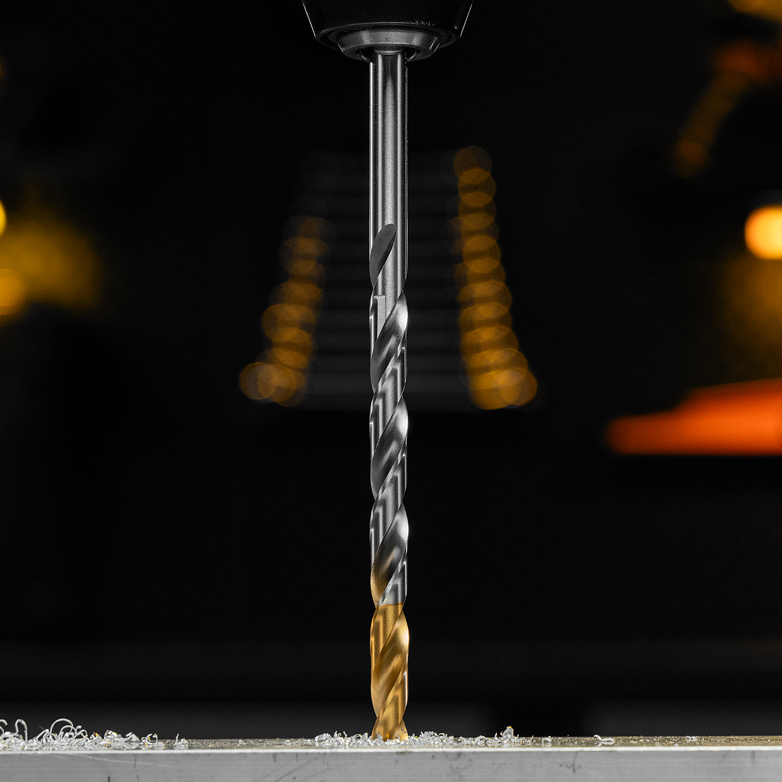 - Высокая производительность — поверхность сверла покрыта нитридом титана, что снижает трение о стенки отверстия и уменьшает нагрев, а также улучшает отвод стружки.