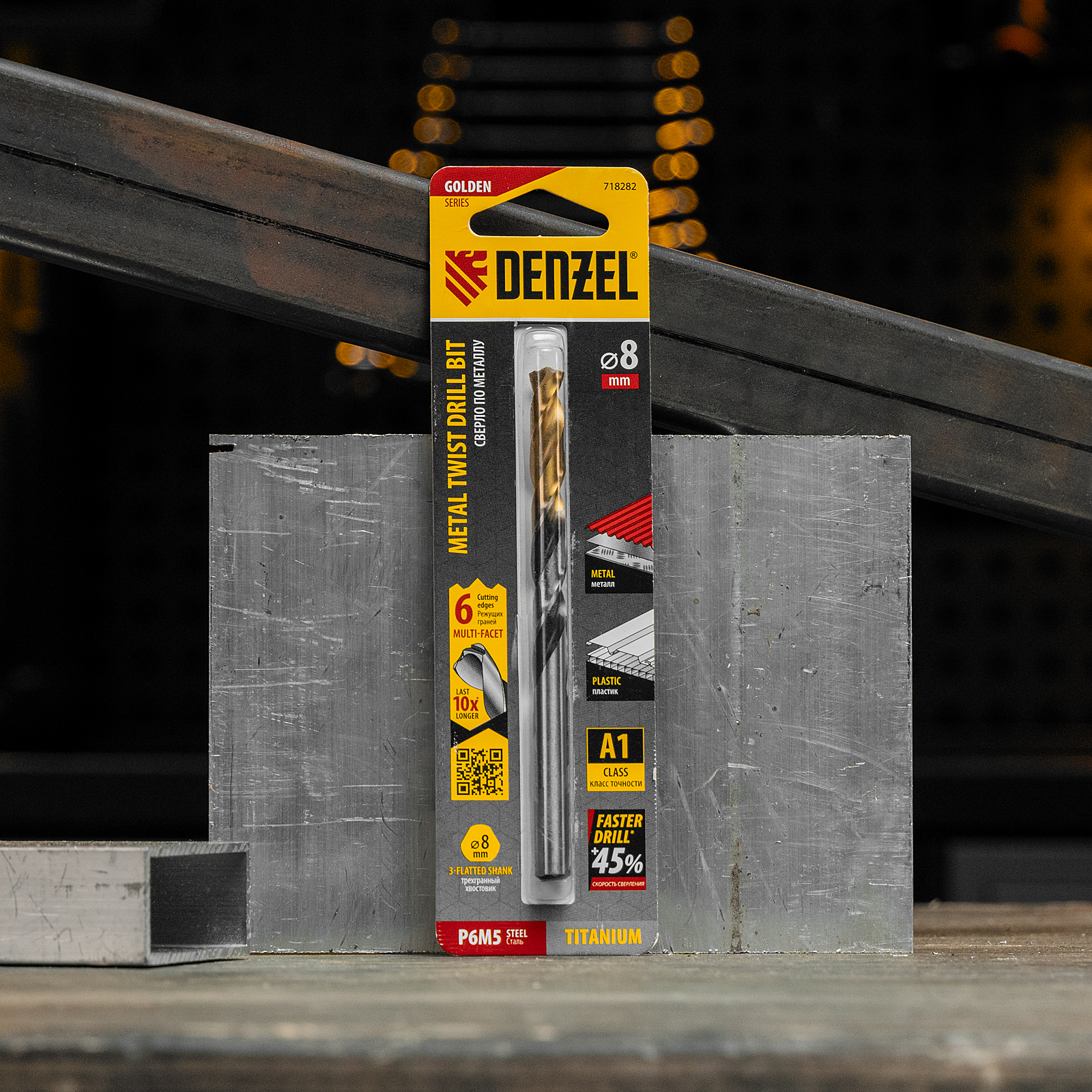 Спиральное сверло по металлу Denzel Golden Tip 718282 из стали P6M5, размером 8 х 117 мм, с многогранной заточкой, предназначено для получения отверстий в легированных сталях и цветных металлах. Многогранная заточка позволяет получать чистые и ровные отверстия практически без заусенцев. Сверлу присвоен класс точности A, что гарантирует высокое качество работ. Оснастка подходит для бытового и профессионального применения.