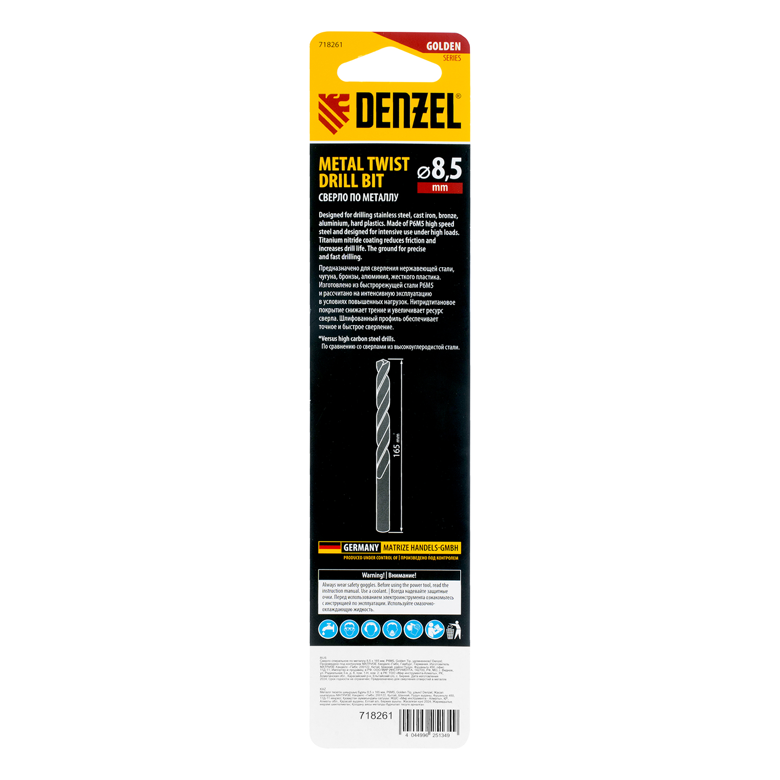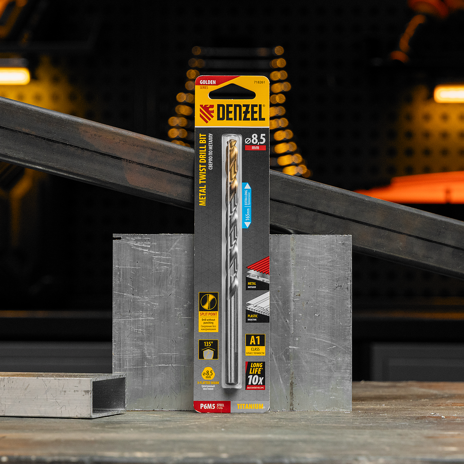 Удлиненное спиральное сверло по металлу Denzel Golden Tip 718261 из стали P6M5, размером 8,5 х 165 мм, предназначено для получения отверстий в легированных и цветных металлах — меди, алюминии, мягкой бронзе, титане, латуни. Оснастка позволяет эффективно справляться с этими задачами благодаря оптимальному углу заточки 135°. Класс точности A гарантирует высокое качество работ, а удлиненный профиль позволяет сверлить глубокие отверстия. Сверло используется для проведения монтажно-сборочных работ.