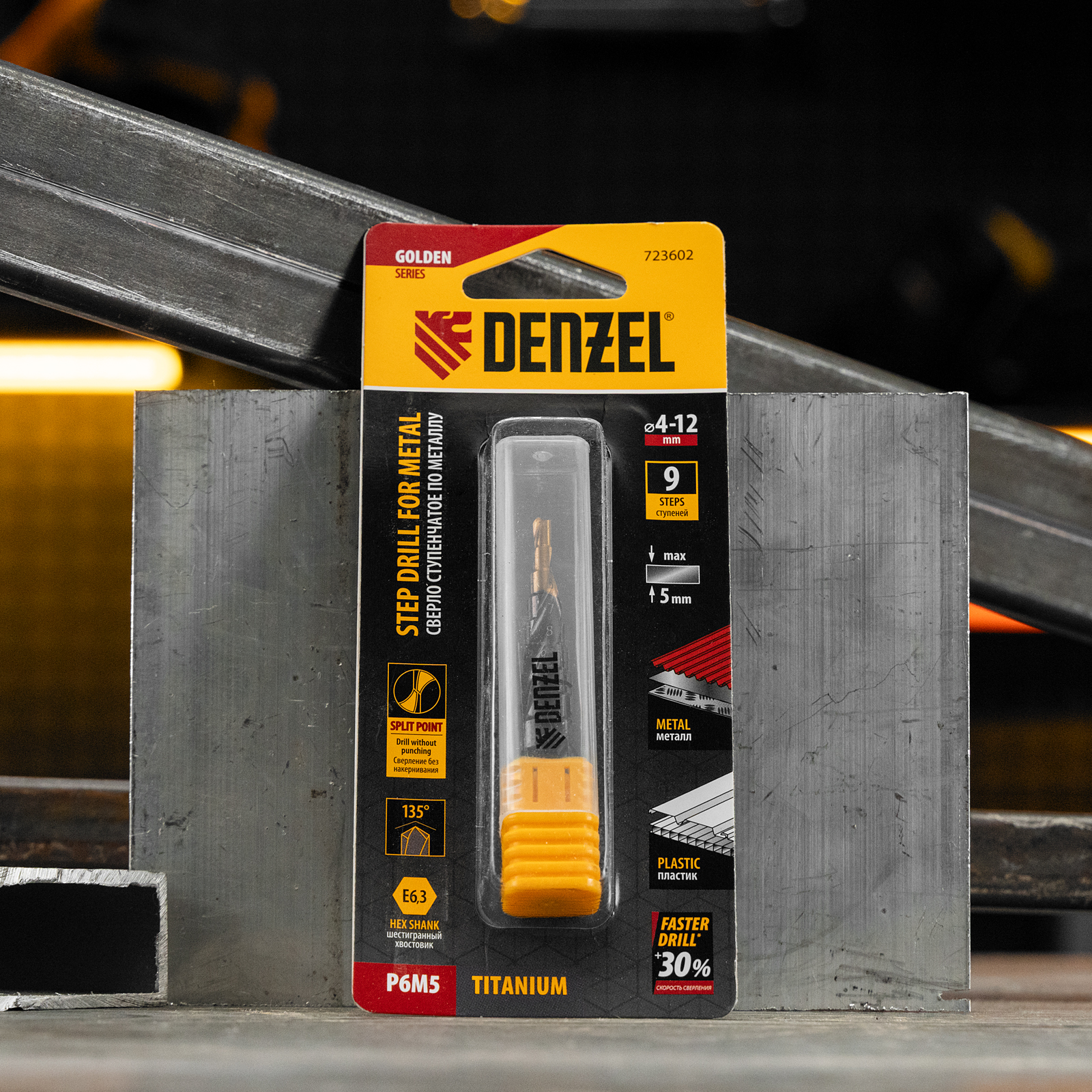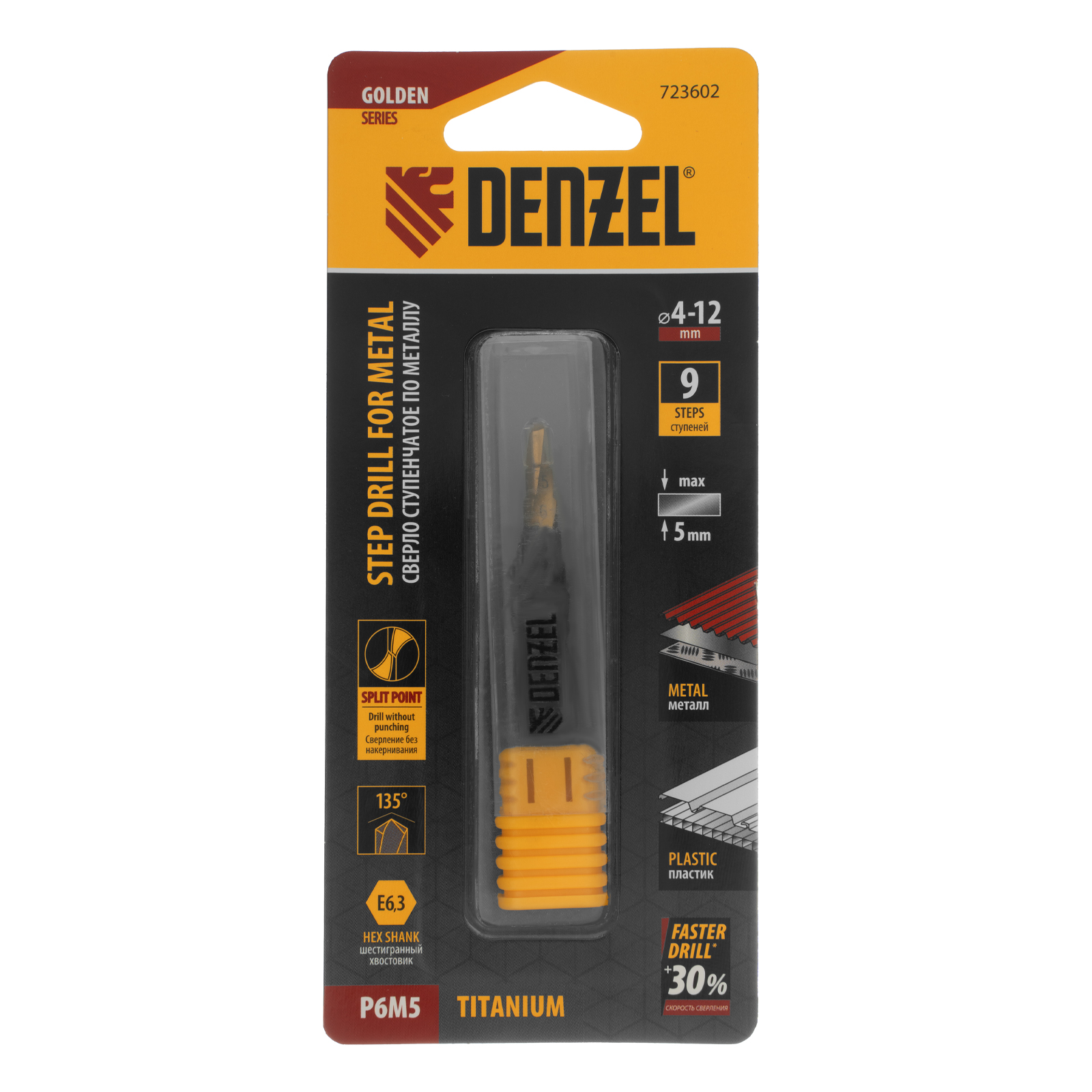 Ступенчатое сверло Denzel 723602 из стали P6M5, с 6-гранным хвостовиком, предназначено для сверления отверстий диаметром от 4 до 12 мм в сталях, цветных металлах и пластике. Избавляет от необходимости иметь при себе целый набор традиционных сверл. Позволяет получать отверстия с ровными краями и уже снятой фаской под гайку или болт. Оснастке присвоен класс точности A1. Сверло пригодится дома и в мастерской.