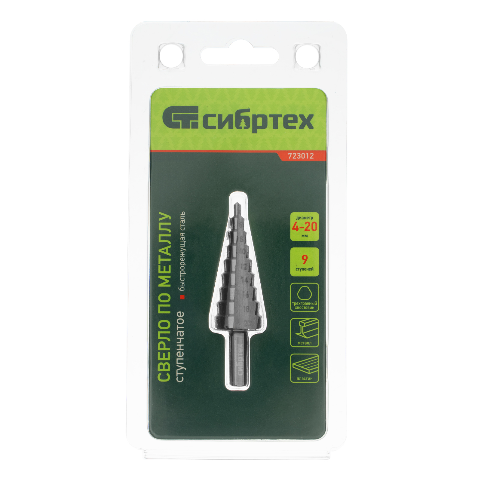 Ступенчатое сверло Сибртех 723012 предназначено для сверления отверстий диаметром от 4 до 20 мм в сталях, цветных металлах и пластике. Избавляет от необходимости иметь при себе целый набор традиционных сверл. Позволяет получать отверстия с ровными краями и уже снятой фаской под гайку или болт. Сверло пригодится дома и в мастерской.