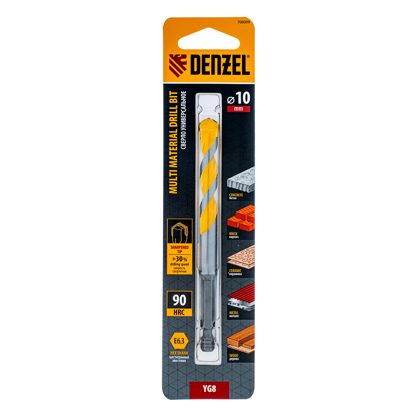 <p>Универсальное сверло Denzel Multi Cut 706009 с шестигранным хвостовиком предназначено для получения отверстий диаметром 10 мм в бетоне, металле, керамике, древесине любых пород, фанере, пластмассе и других материалах. Используется при проведении строительных, ремонтных работ, также пригодится в быту.</p><h2>Преимущества</h2><ul><li>Устойчивость к ударным нагрузкам — сверло изготовлено из прочной стали 40Cr, твердосплавная пластина надежно закреплена при помощи высококачественного припоя.</li><li>Эффективность — продуманная форма спирали способствует быстрому удалению продуктов сверления, что повышает производительность оснастки и увеличивает срок ее службы.</li><li>Надежная фиксация — шестигранный хвостовик не проворачивается в патроне.</li><li>Удобная упаковка — сверло поставляется в двойном блистере, его можно осмотреть перед покупкой.</li></ul>