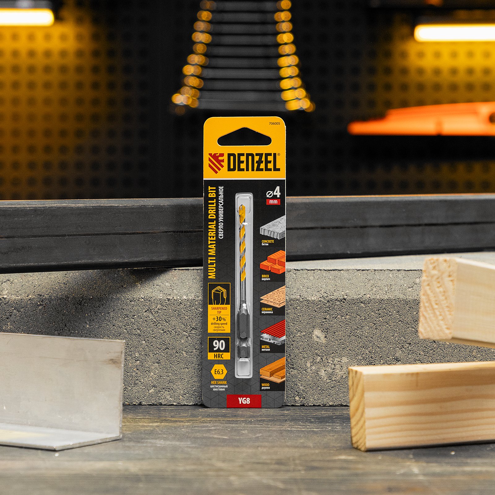 <p>Универсальное сверло Denzel Multi Cut 706005 с шестигранным хвостовиком предназначено для получения отверстий диаметром 4 мм в бетоне, металле, керамике, древесине любых пород, фанере, пластмассе и других материалах. Используется при проведении строительных, ремонтных работ, также пригодится в быту.</p><h2>Преимущества</h2><ul><li>Устойчивость к ударным нагрузкам — сверло изготовлено из прочной стали 40Cr, твердосплавная пластина надежно закреплена при помощи высококачественного припоя.</li><li>Эффективность — продуманная форма спирали способствует быстрому удалению продуктов сверления, что повышает производительность оснастки и увеличивает срок ее службы.</li><li>Надежная фиксация — шестигранный хвостовик не проворачивается в патроне.</li><li>Удобная упаковка — сверло поставляется в двойном блистере, его можно осмотреть перед покупкой.</li></ul>