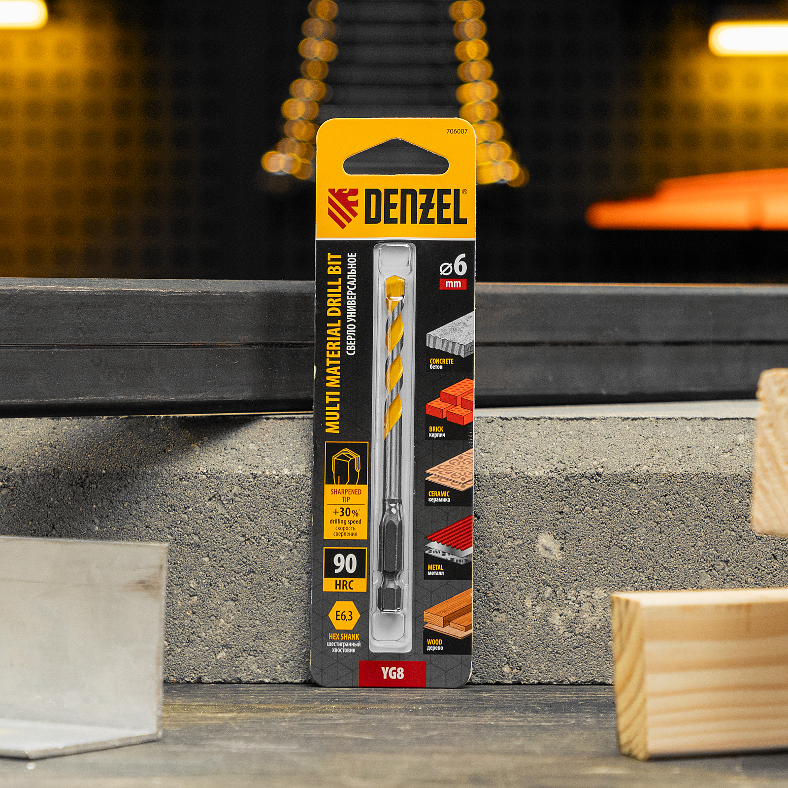 <p>Универсальное сверло Denzel Multi Cut 706007 с шестигранным хвостовиком предназначено для получения отверстий диаметром 6 мм в бетоне, металле, керамике, древесине любых пород, фанере, пластмассе и других материалах. Используется при проведении строительных, ремонтных работ, также пригодится в быту.</p><h2>Преимущества</h2><ul><li>Устойчивость к ударным нагрузкам — сверло изготовлено из прочной стали 40Cr, твердосплавная пластина надежно закреплена при помощи высококачественного припоя.</li><li>Эффективность — продуманная форма спирали способствует быстрому удалению продуктов сверления, что повышает производительность оснастки и увеличивает срок ее службы.</li><li>Надежная фиксация — шестигранный хвостовик не проворачивается в патроне.</li><li>Удобная упаковка — сверло поставляется в двойном блистере, его можно осмотреть перед покупкой.</li></ul>